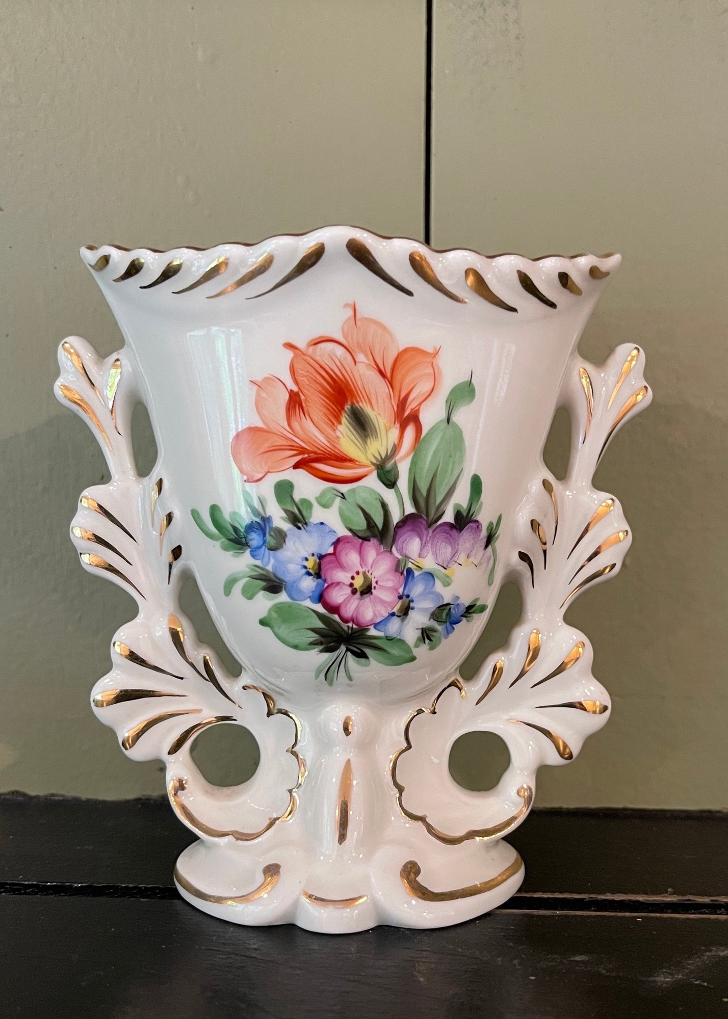 Herend Fischer oval floral handpainted vase with a pedestal base. Herend Porcelain, since 1826, produces hand-painted porcelain renowned for its distinctive patterns. Located in Herend, Hungary, the manufactory employs artisans to create over 5000 design patterns.