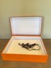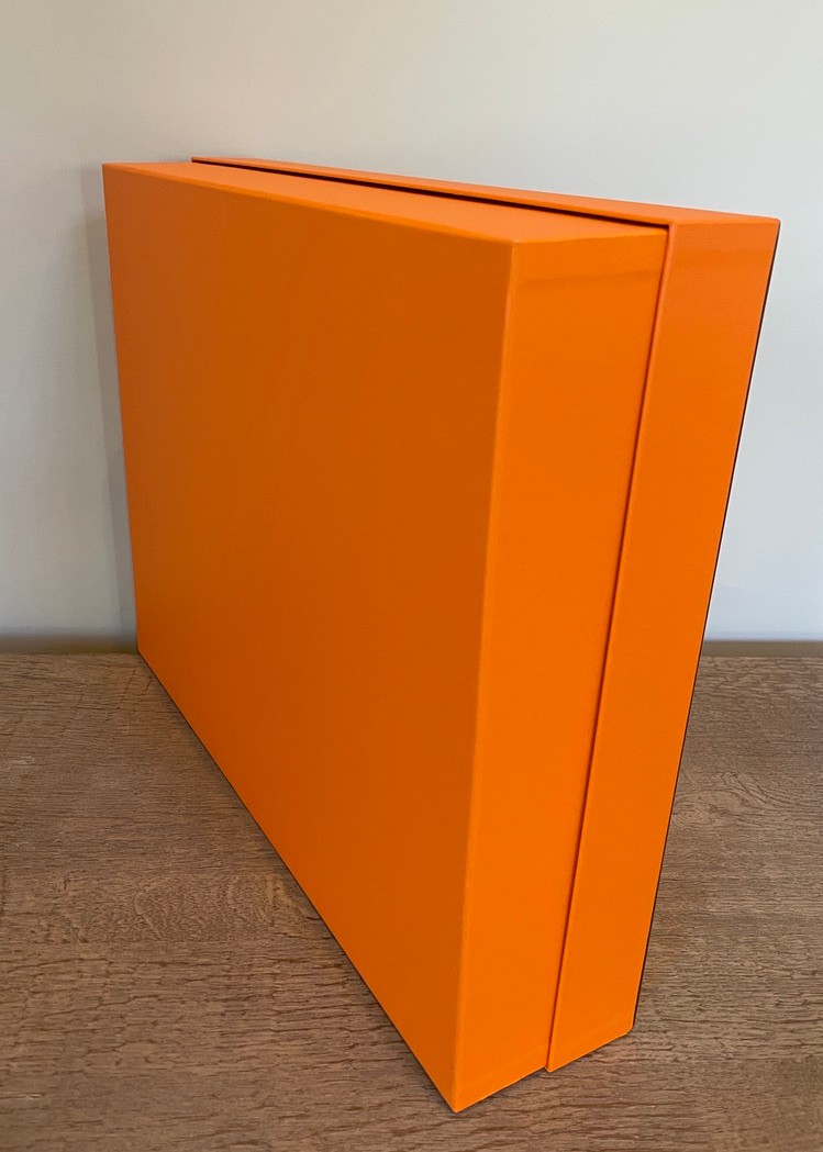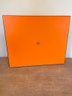 Elegant and instantly recognizable, this authentic Hermès Paris presentation box is finished in the brand’s iconic orange with black trim and centered logo. Crafted with the same attention to detail synonymous with Hermès packaging, this large-format box features a fitted lid and a clean, structured interior—ideal for storage or display.