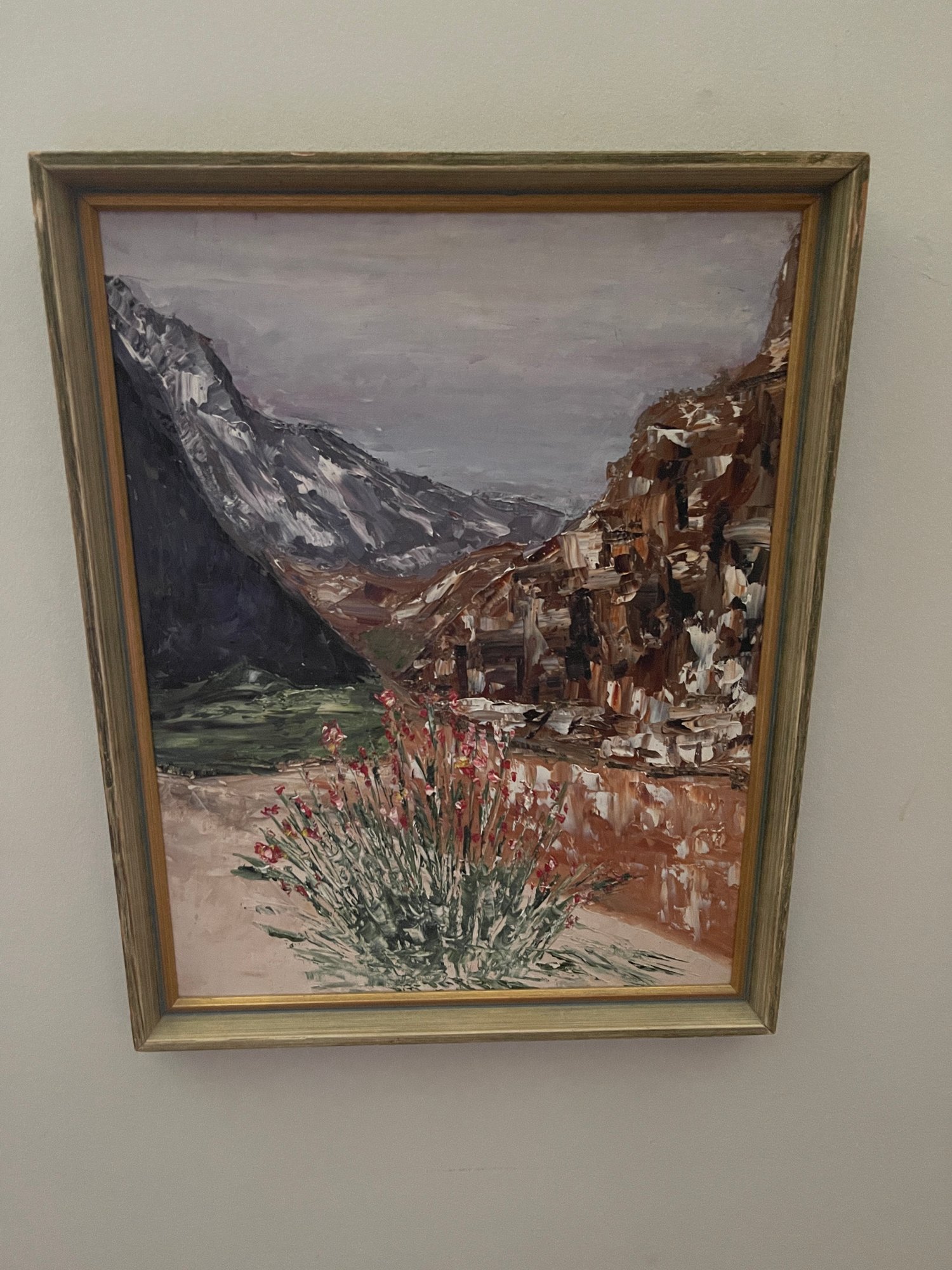 Oil painting with a signature on the back that may be the artist. The painting is unsigned in the front.