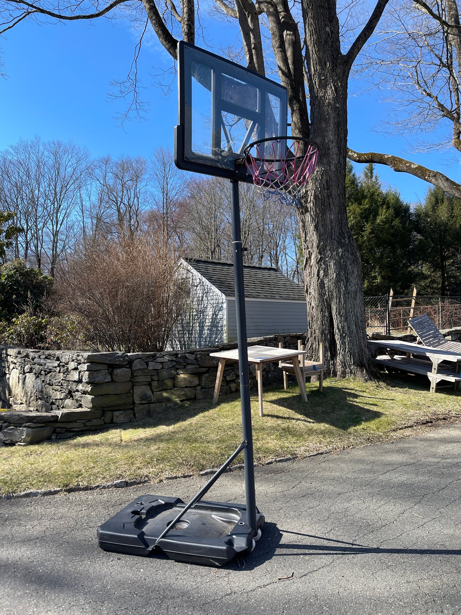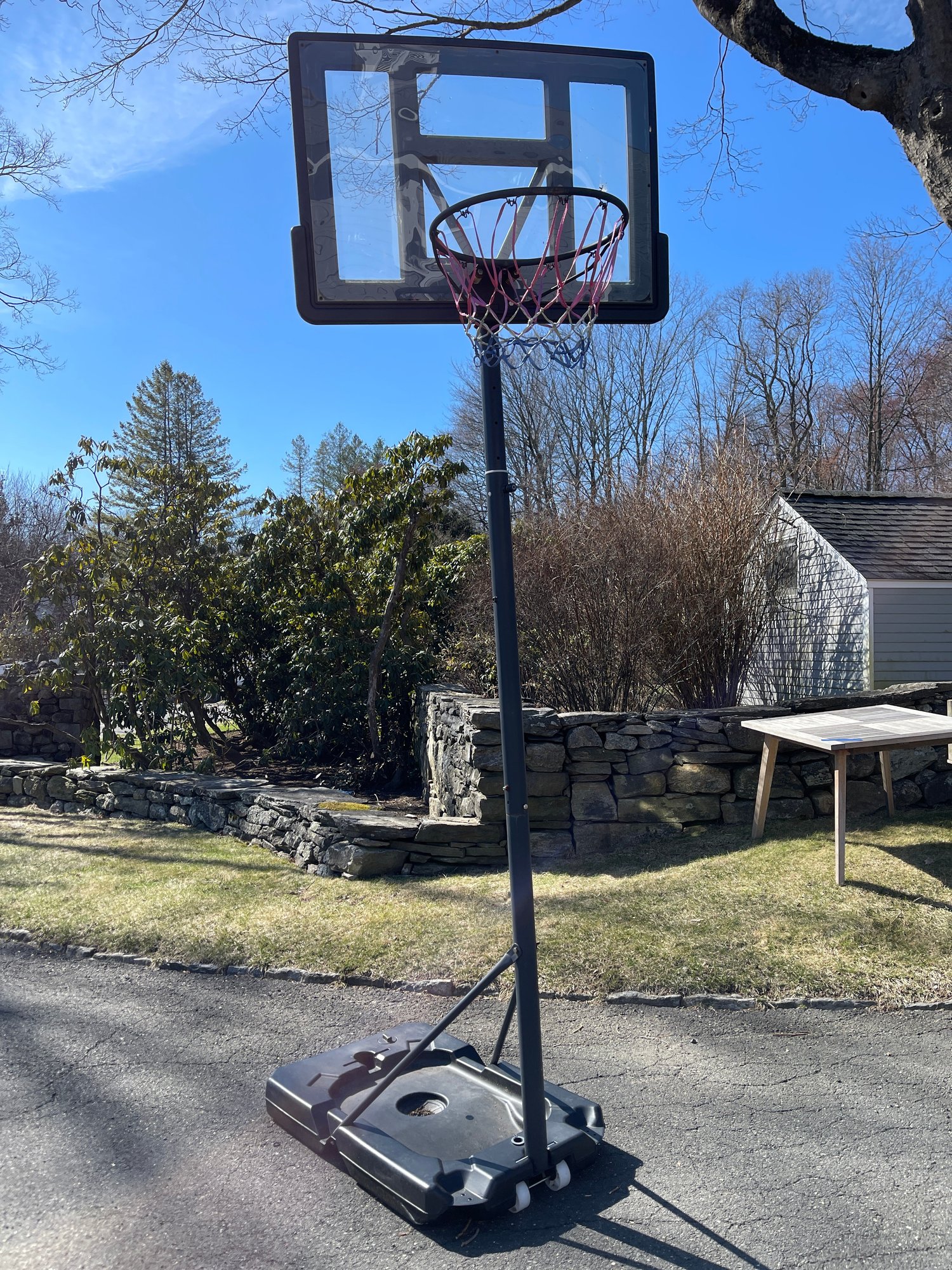 A versatile and durable portable basketball hoop, perfect for driveway or backyard play. This unit features an adjustable height pole, allowing players of all ages and skill levels to enjoy the game.
