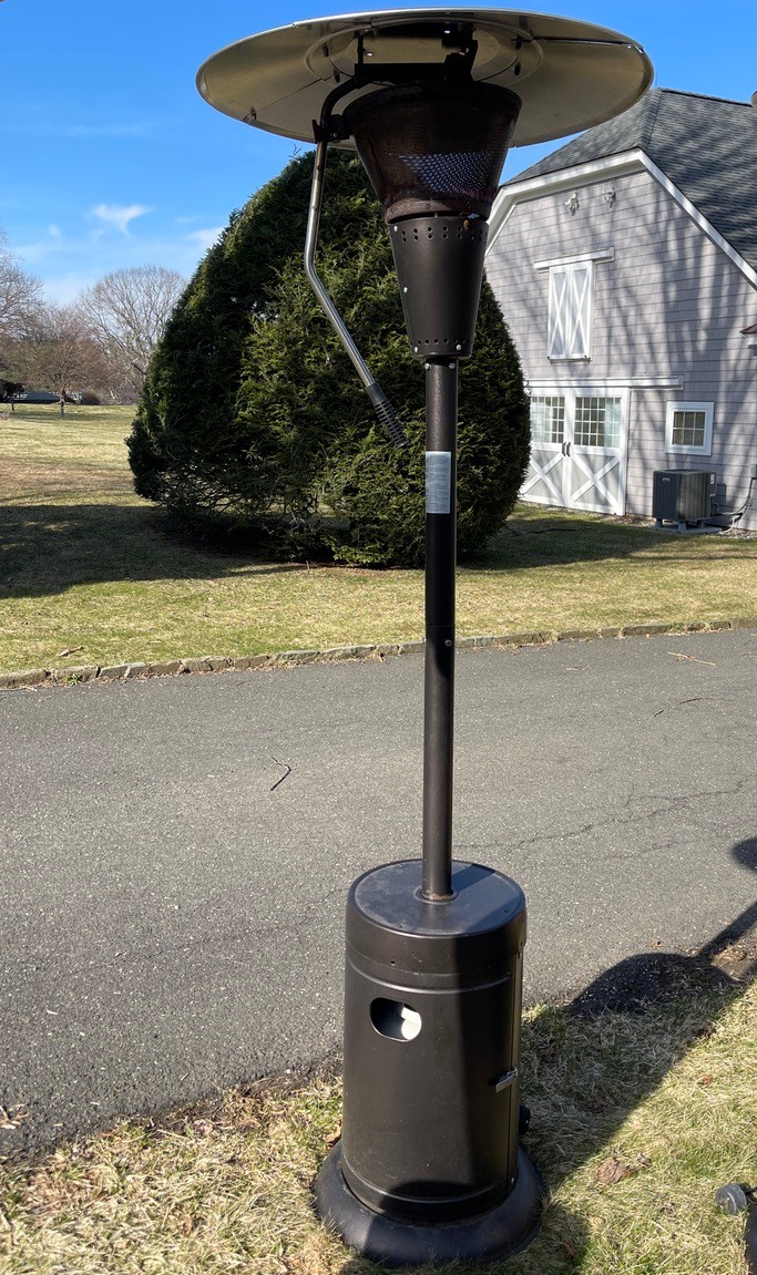 Freestanding outdoor propane patio heater designed to extend the use of your outdoor space during cooler weather. Features a classic mushroom-style heat reflector for efficient heat distribution and a tall, sleek profile suitable for patios, decks, and entertaining areas.