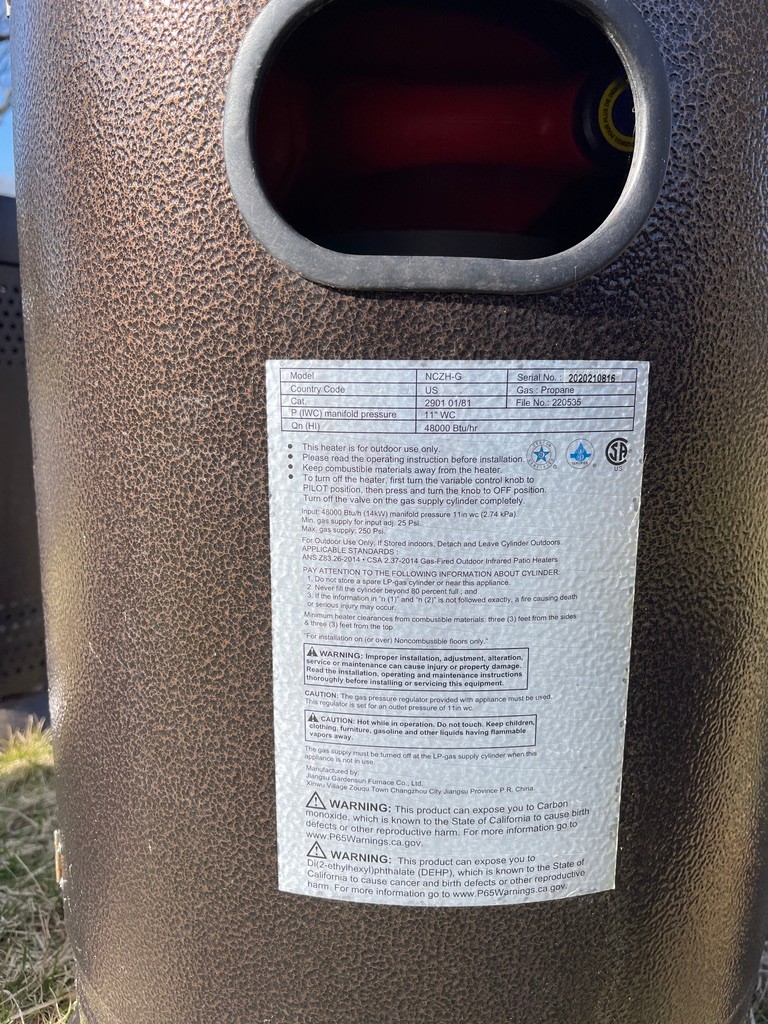 Freestanding outdoor propane patio heater designed to extend the use of your outdoor space during cooler weather. Features a classic mushroom-style heat reflector for efficient heat distribution and a tall, sleek profile suitable for patios, decks, and entertaining areas.