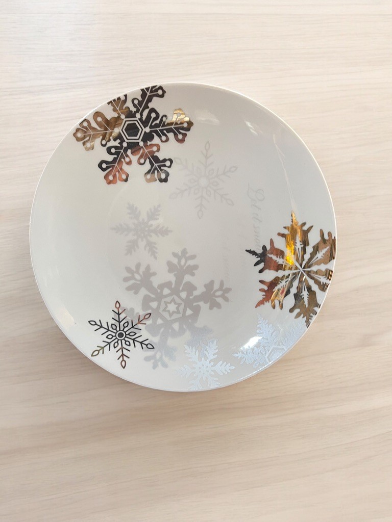 Six Restoration Hardware snowflake dessert or salad plates perfect for the upcoming season.