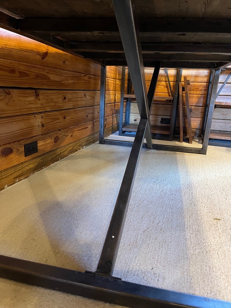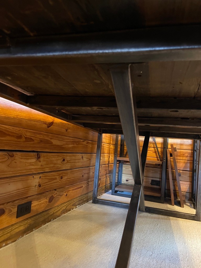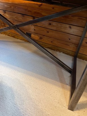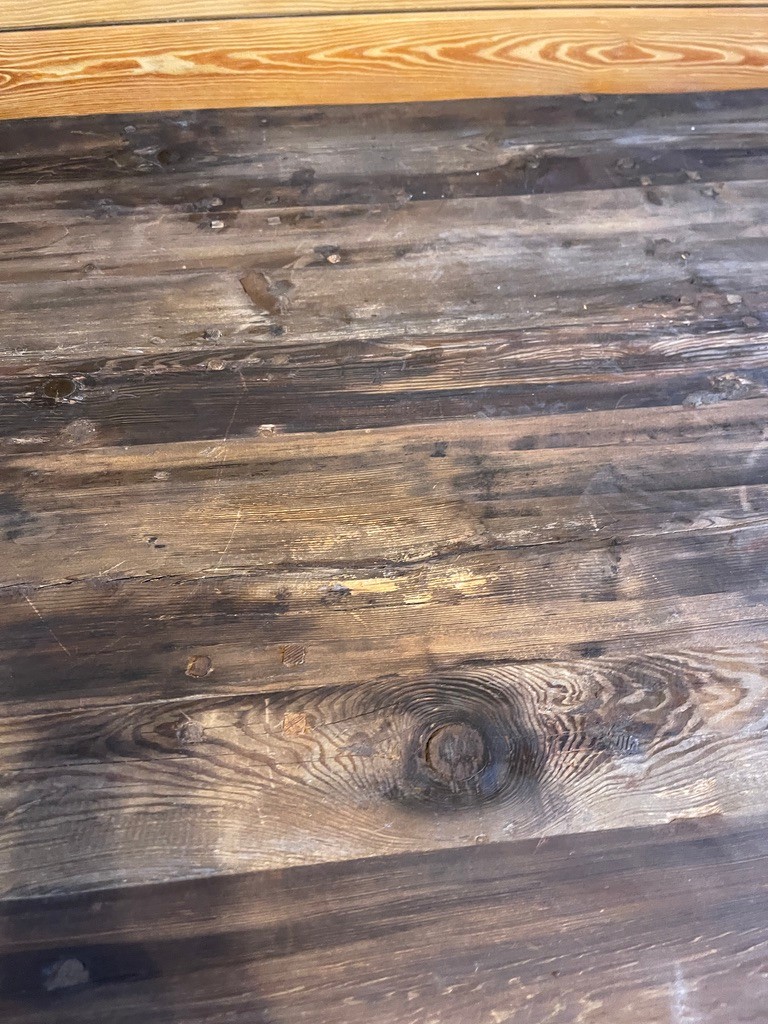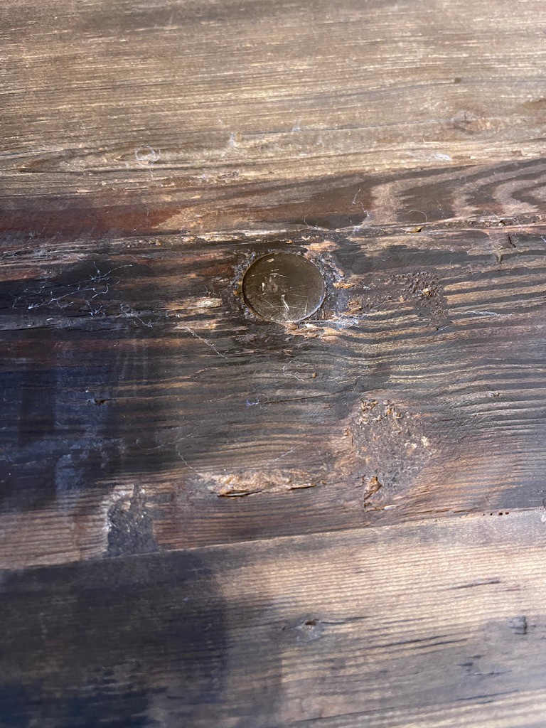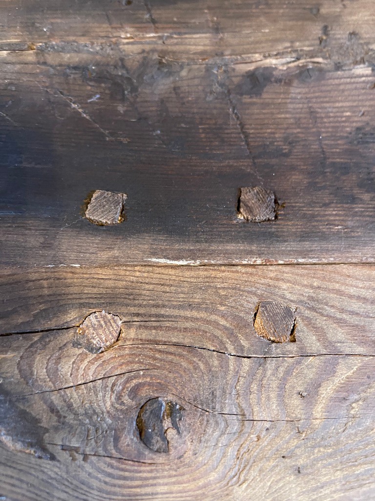 Notes: Condition is consistant with age. Note left side reclaimed wood turned up a bit. Photographs are considered part of the description and condition and supersede all written descriptions.