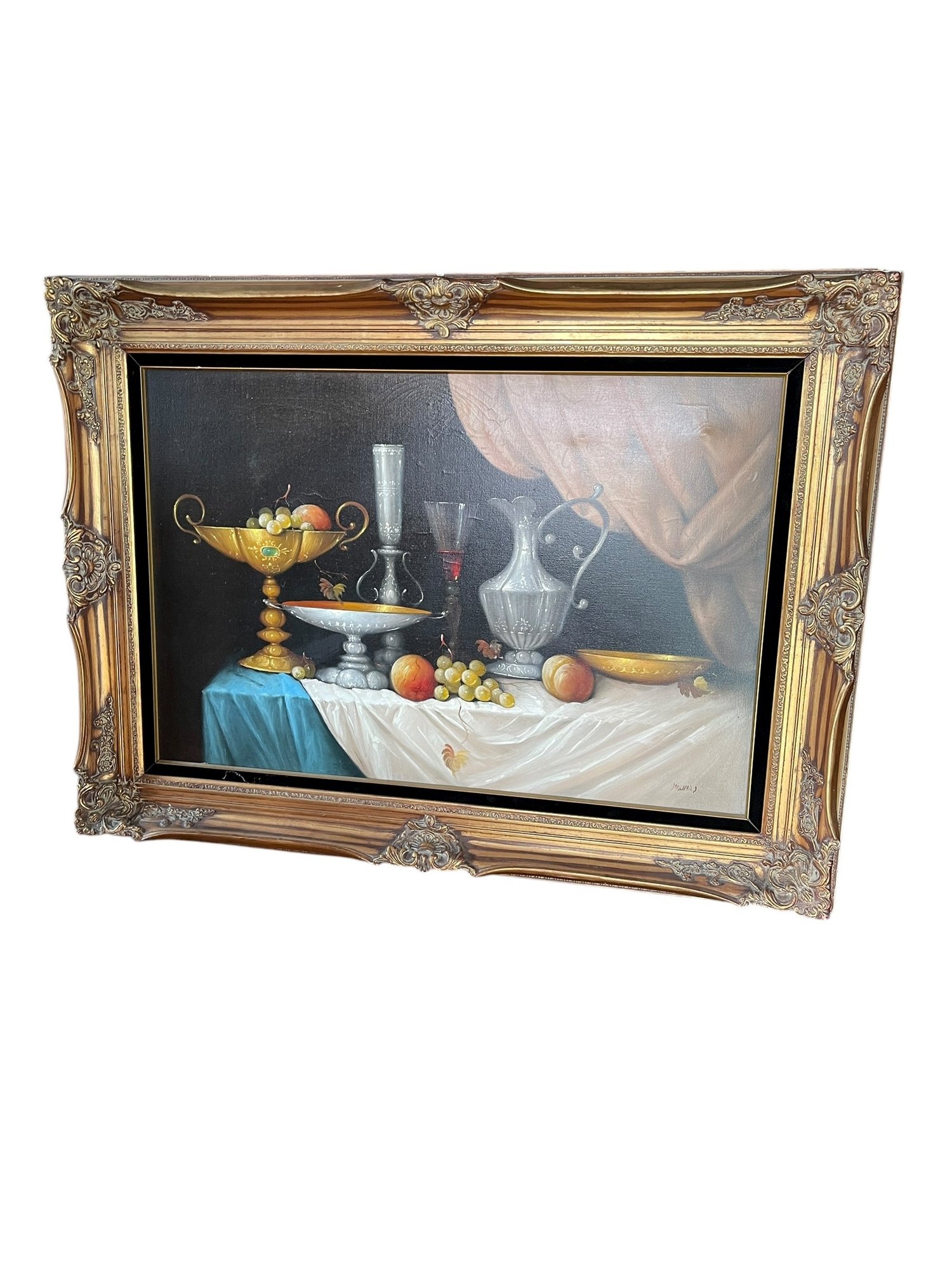 Notes: Consistant with age and use. The frame has a sligh chipping mostly to top which would be obscured when hung. Photographs are considered part of the description and condition and supersede all written descriptions.