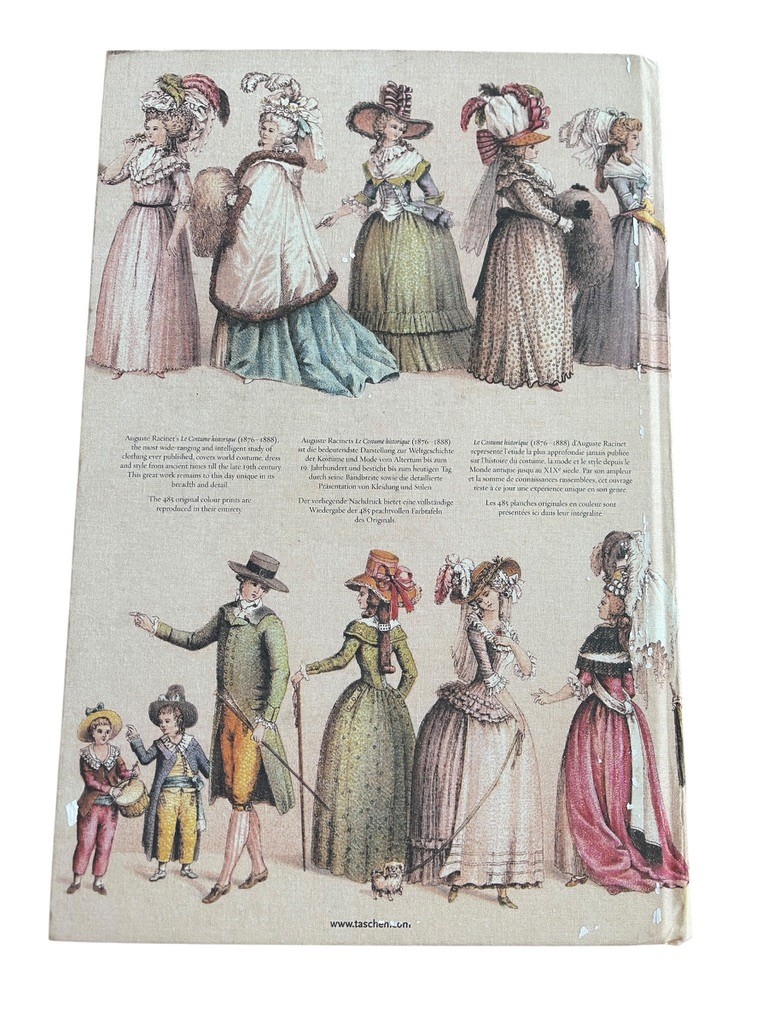 The Complete Costume History by Auguste Racinet, published by TACHEN. This is a landmark historical clothing and style book with illustrations from antique to the end of the 19th century. Contains precise color illustrations and detailed commentary on global fashsion including French couture. This is a large and impressive book.