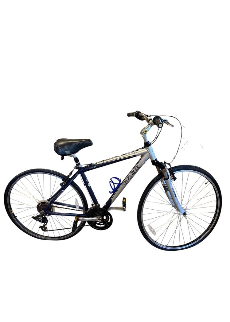 Reliable Trek 700 series hybrid bicycle designed for comfort, versatility, and everyday riding. This lightweight aluminum frame bike features a smooth, upright riding position with flat handlebars, making it ideal for commuting, fitness, or casual rides on paved roads and bike paths.