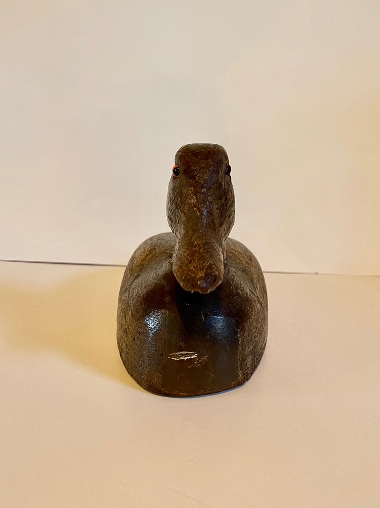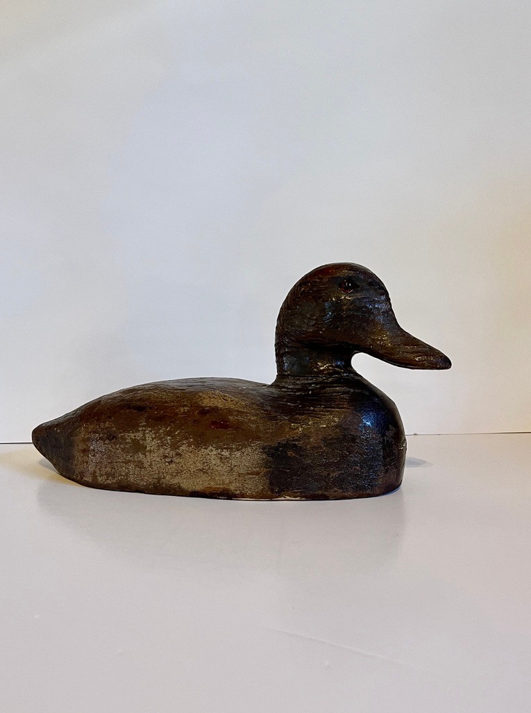 This piece embodies the charm of traditional hunting decoys, making it equally appealing as a decorative object for coastal, farmhouse, or sporting interiors. Its worn finish and honest wear reflect years of use and lend a warm, collected feel.