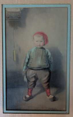 Child with red cap pastel drawing - Signed