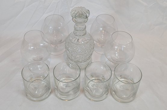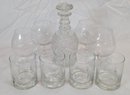 Crystal Decanter with 4 Brandy sniffers and 4 rocks glasses