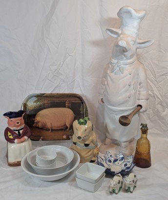 Large vintage ceramic chef pig