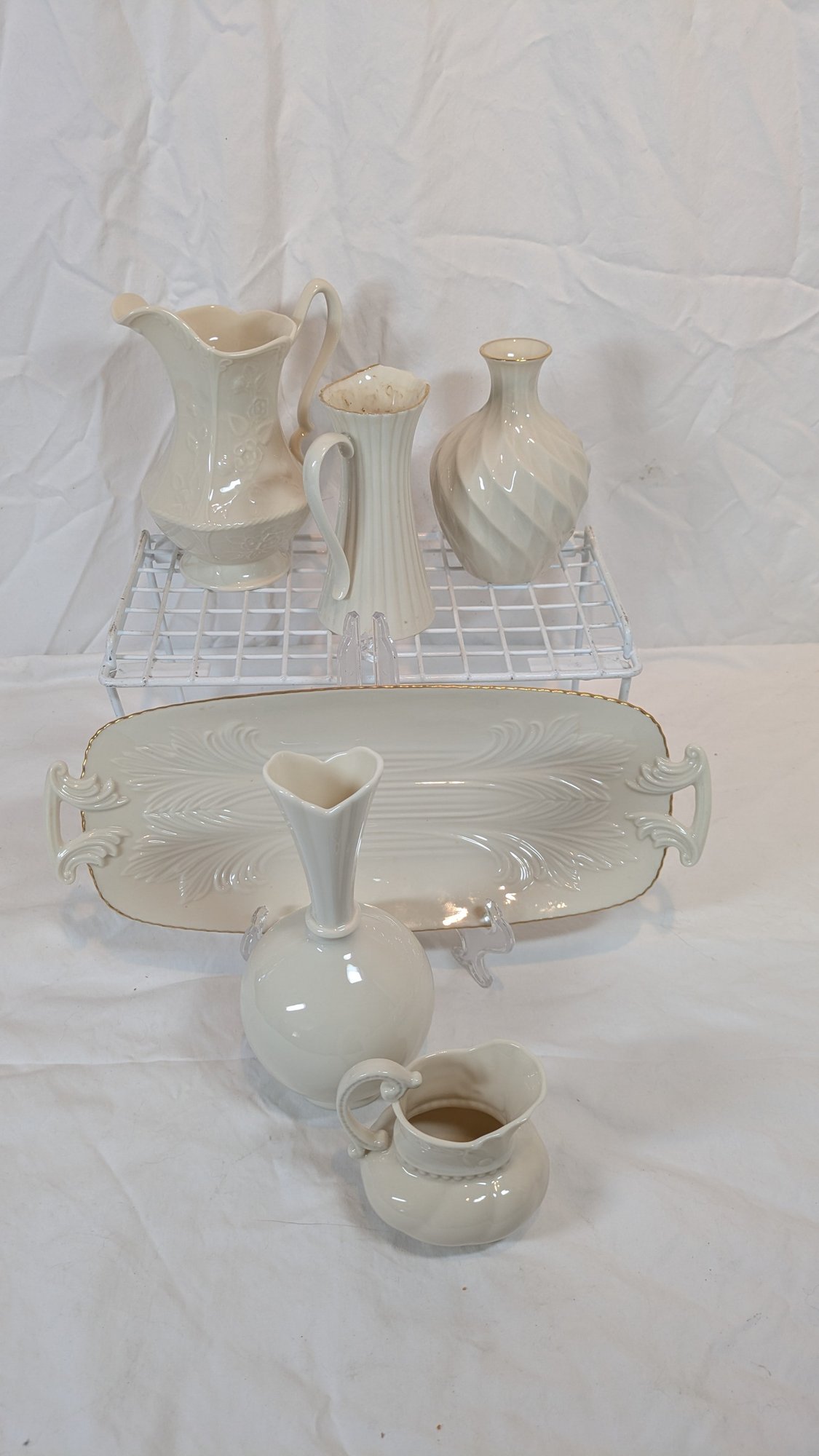 Lenox Ivory vase bundle with creamer pitcher and oval plate