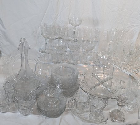 Vintage Fostoria Navarre Clear Etched Glass Dining Set