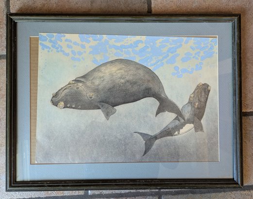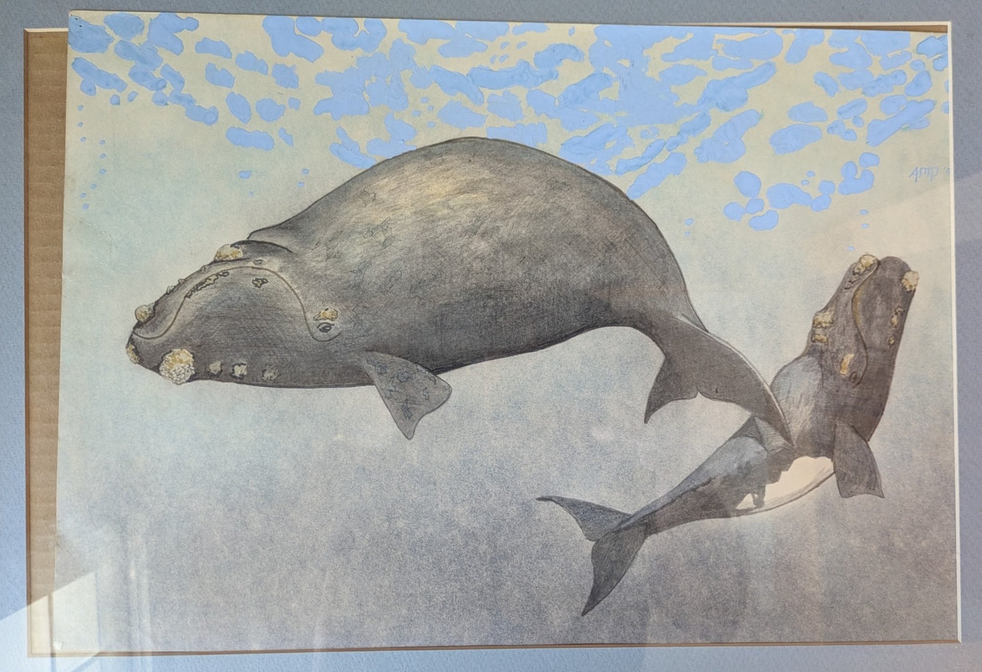 Watercolor painting by whale and calf by Andrea Collesano