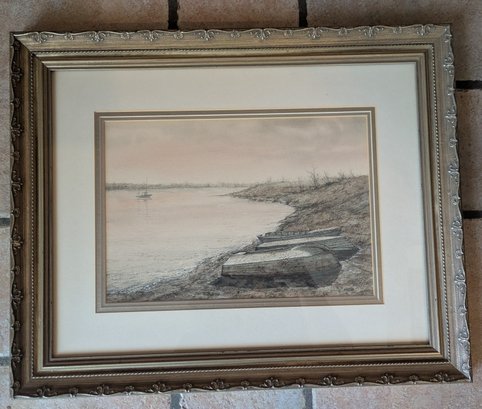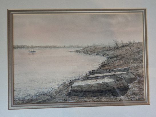 Watercolor Painting of boat on shoreline -Signed Proctor