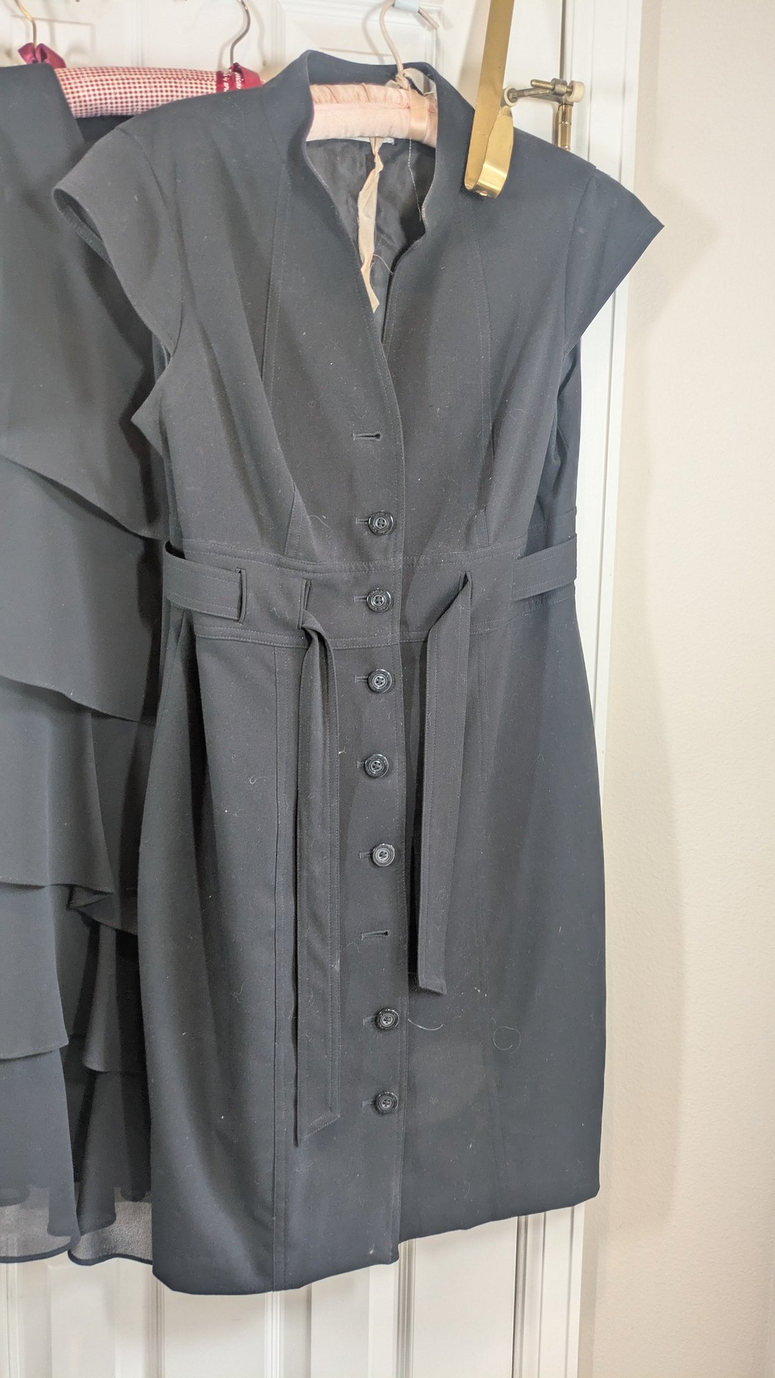 Black button-up sleeveless dress with belt - size medium