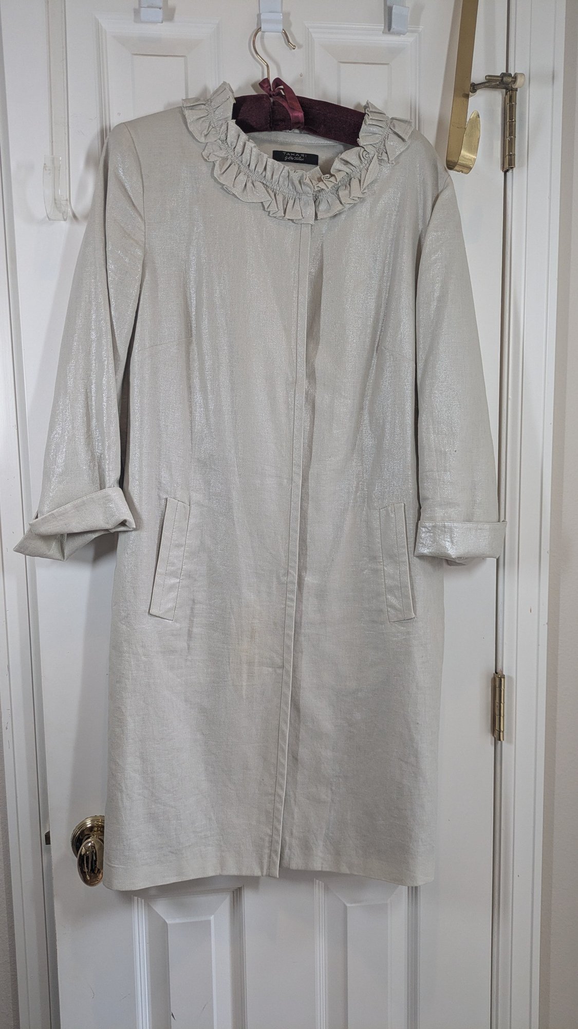 Shimmer cream sleeveless button-up dress - size medium