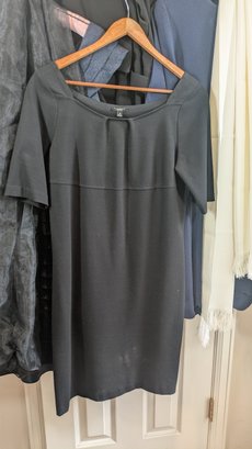 Black mid-sleeve knee length dress with black scarf - size 10