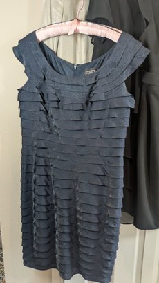 Dark blue ruffle keen length dress with black scarf - size 10