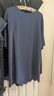 Blue mid-sleeve knee length dress with cream scarf - size large