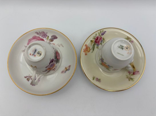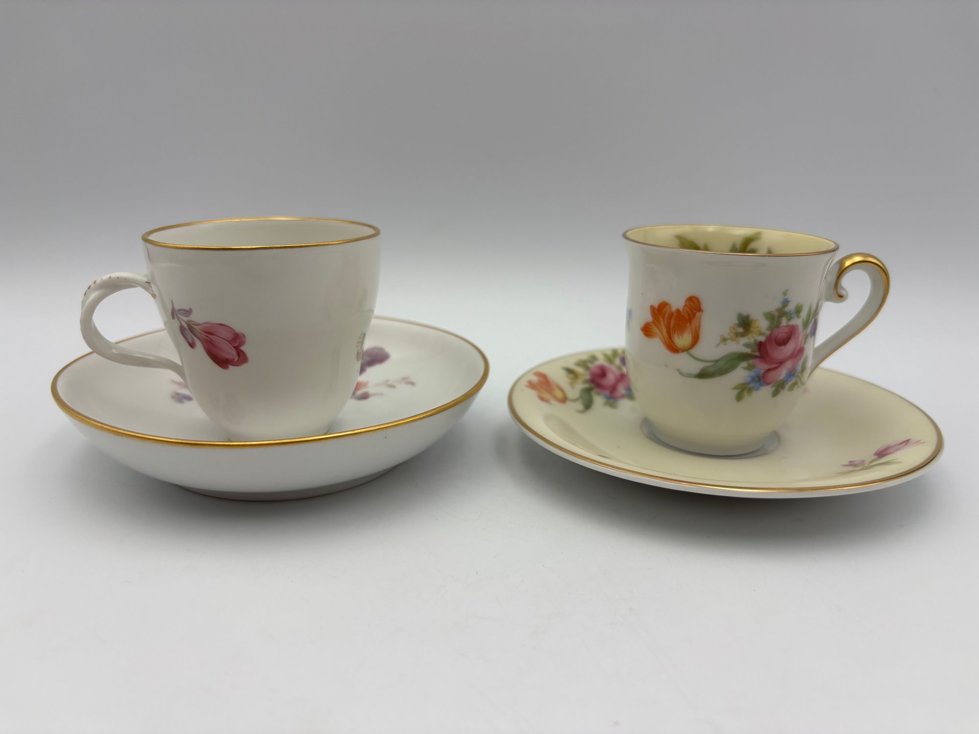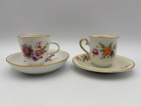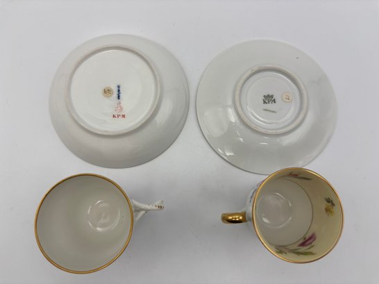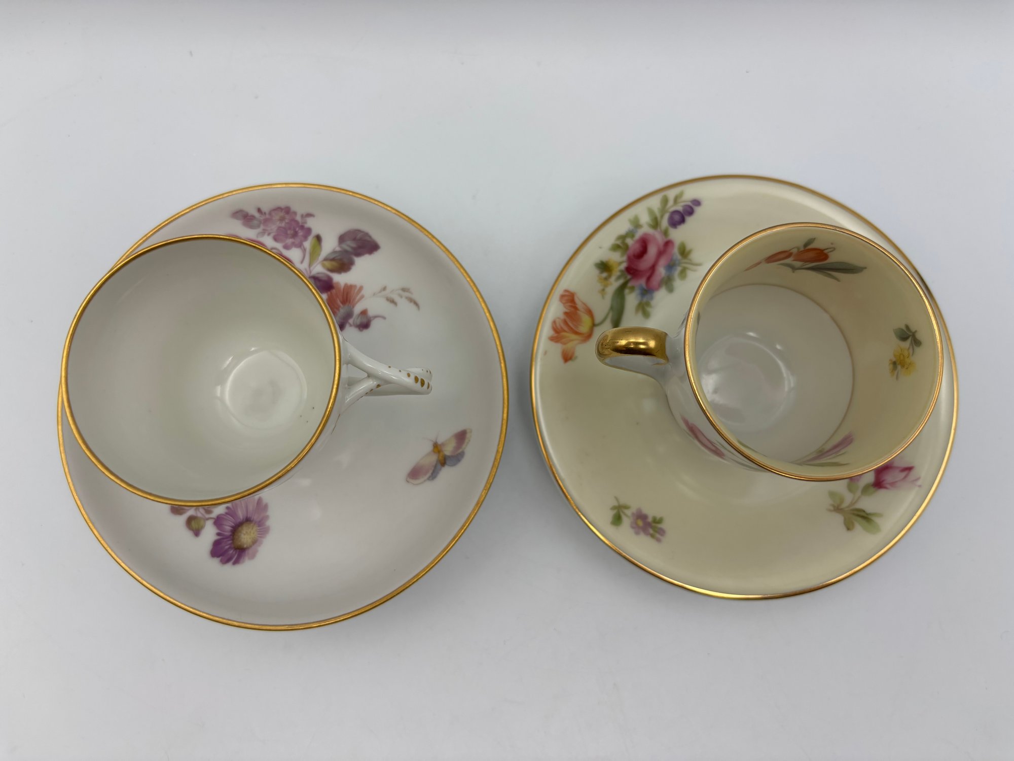 Pair Of Antique German Dresden Royal Berlin KPM Floral And Gold Teacup And Saucer Set