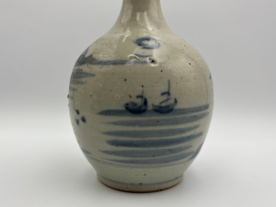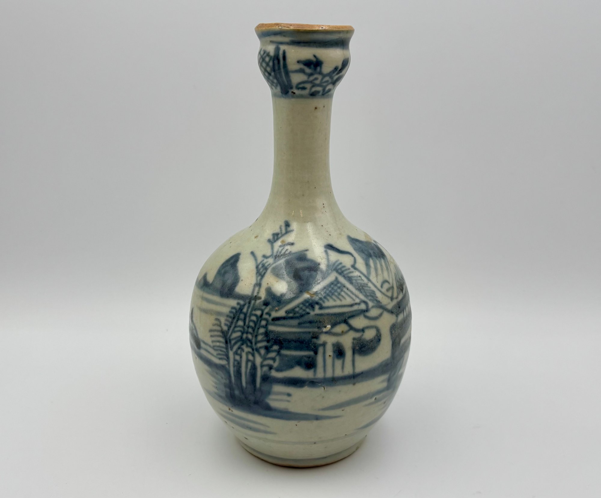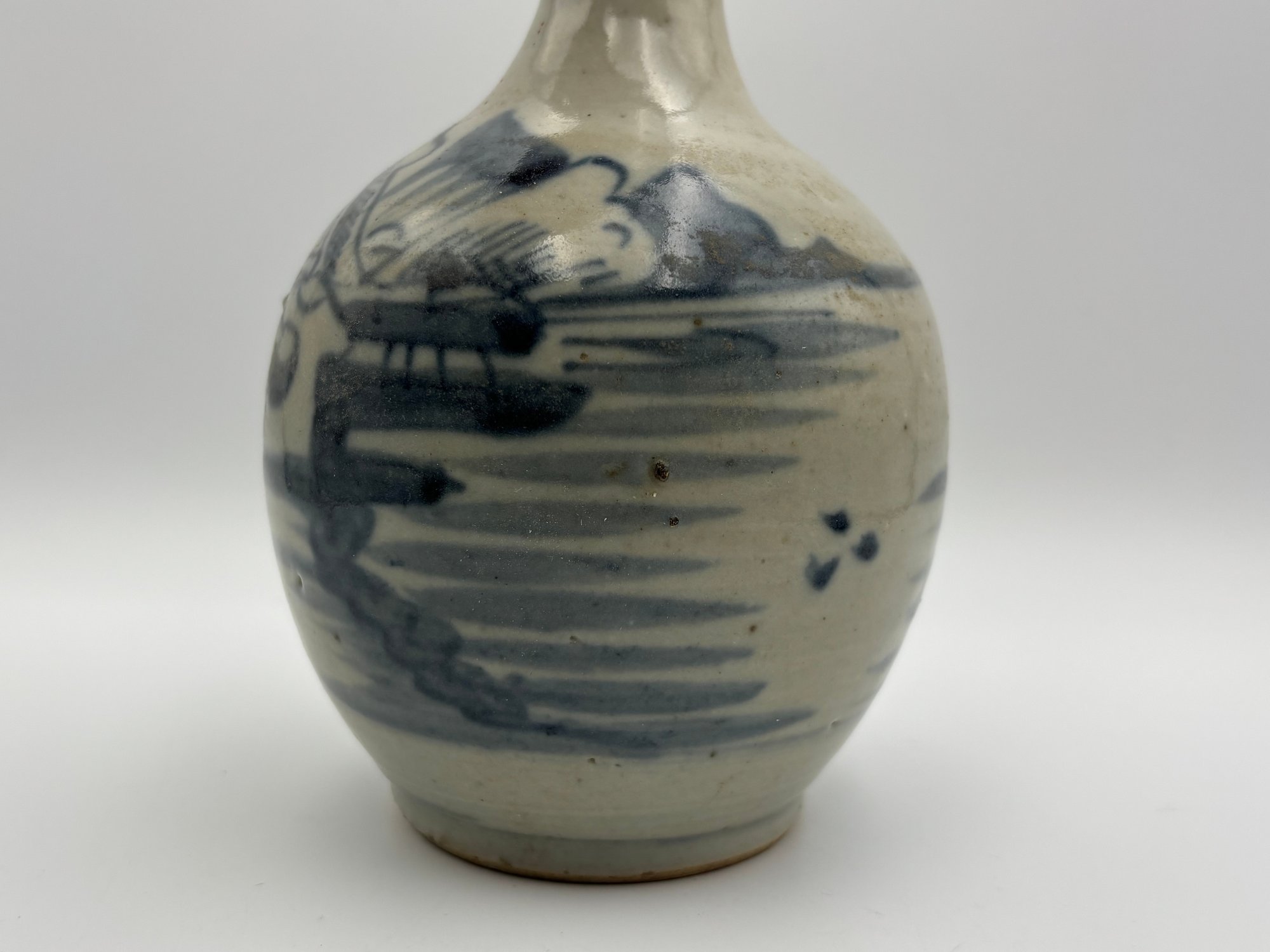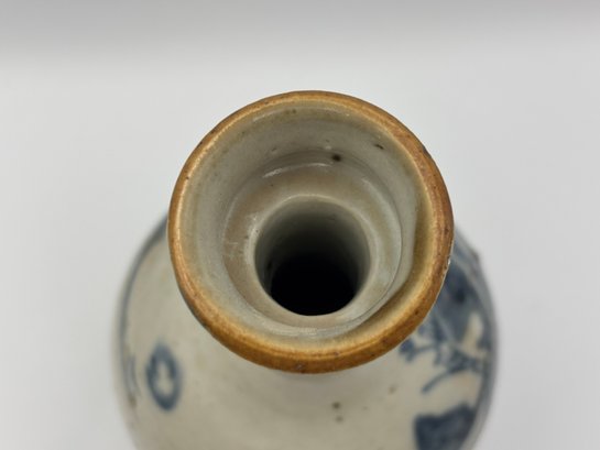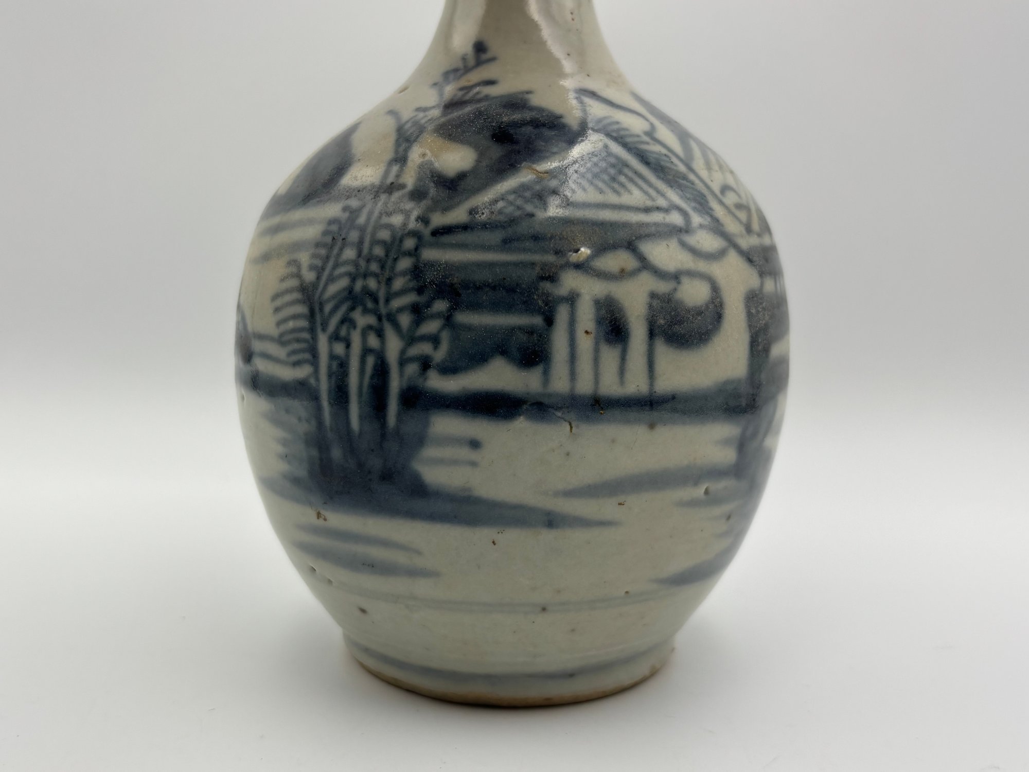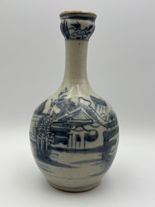 Antique 19th Century Blue & White Porcelain "Garlic Neck" Bottle Form Vase 8"