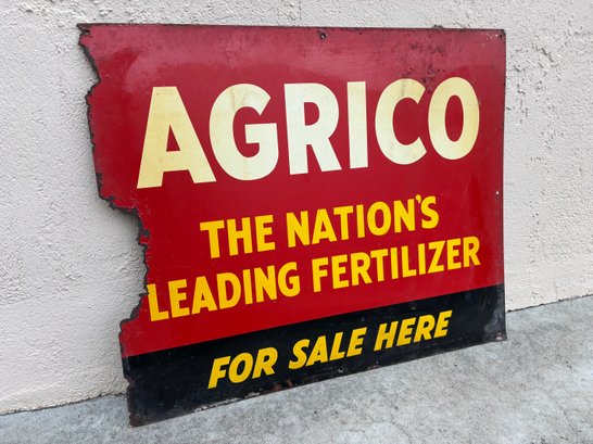 Antique Agrico Fertilizer Metal Farm Dealer Sign 1940'S 1950'S #2 - 24" X 20"