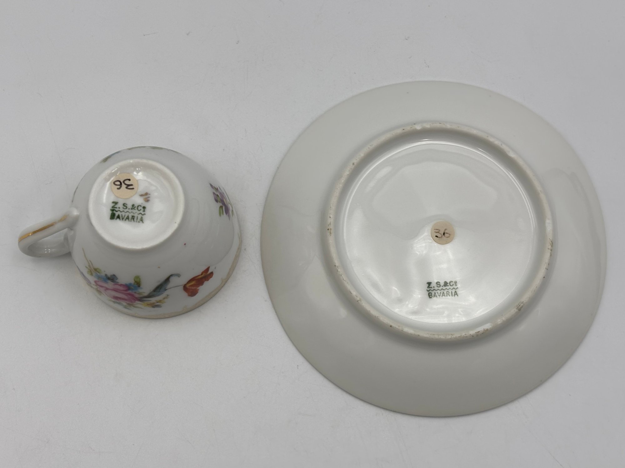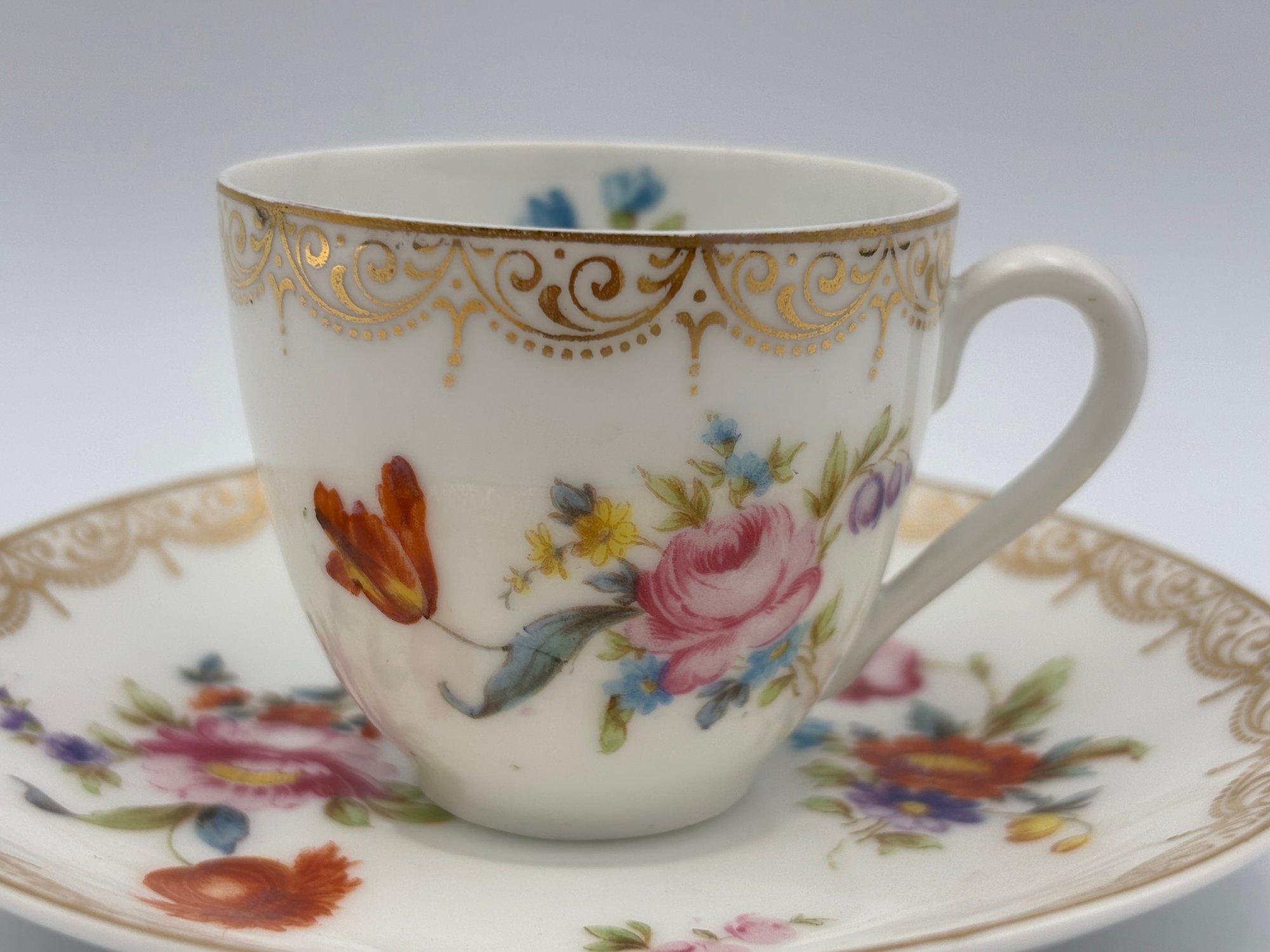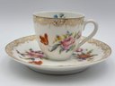 Antique Bavarian Dresden Demitasse Teacup And Saucer Z.S. & C Mark Gold Gilt Floral Pattern