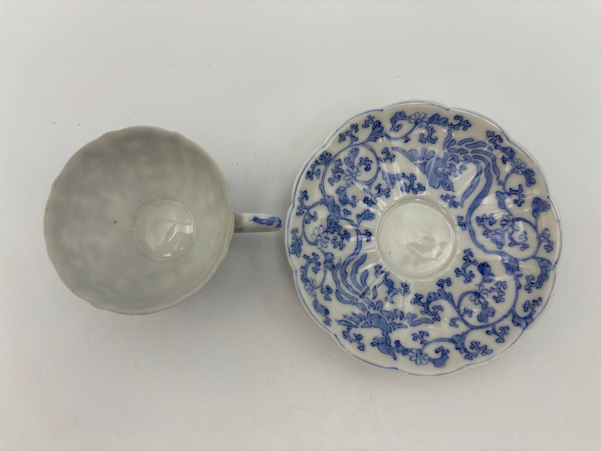Antique Chinese Demitasse Blue And White Phoenix By Minton Teacup And Saucer