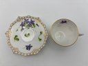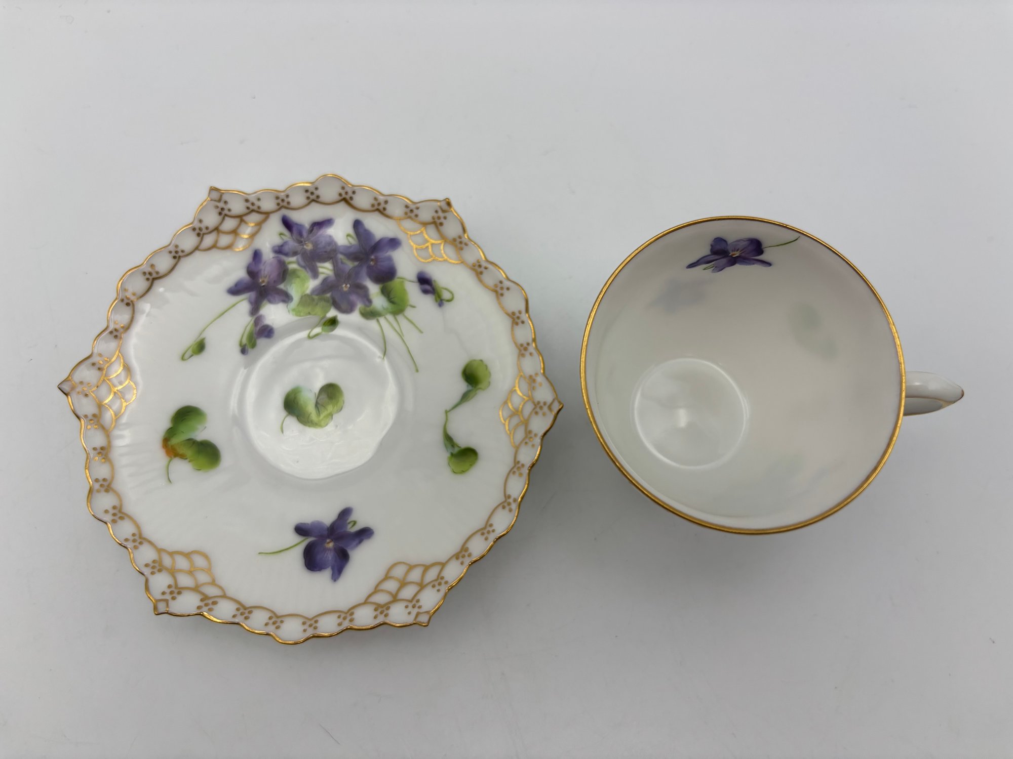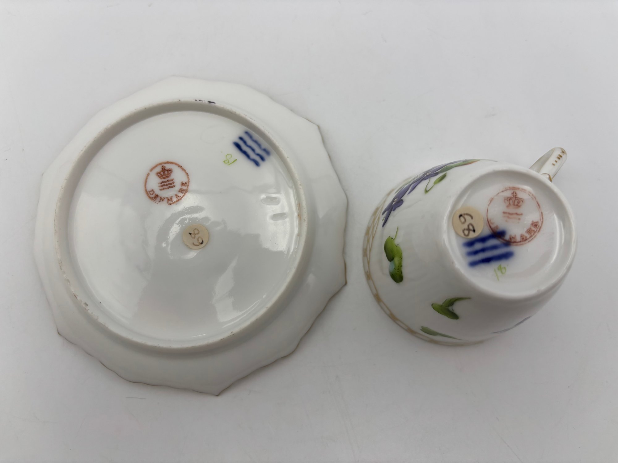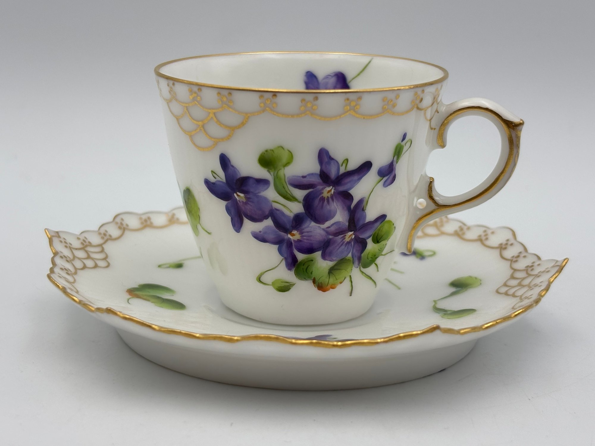 Antique Danish Royal Copenhagen Demitasse Teacup And Saucer Dainty Violet Decorations