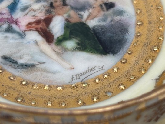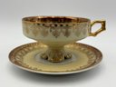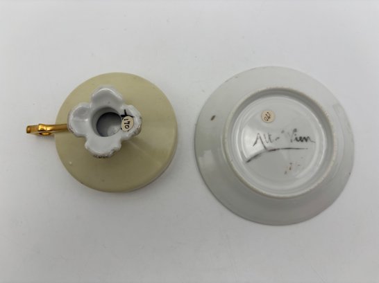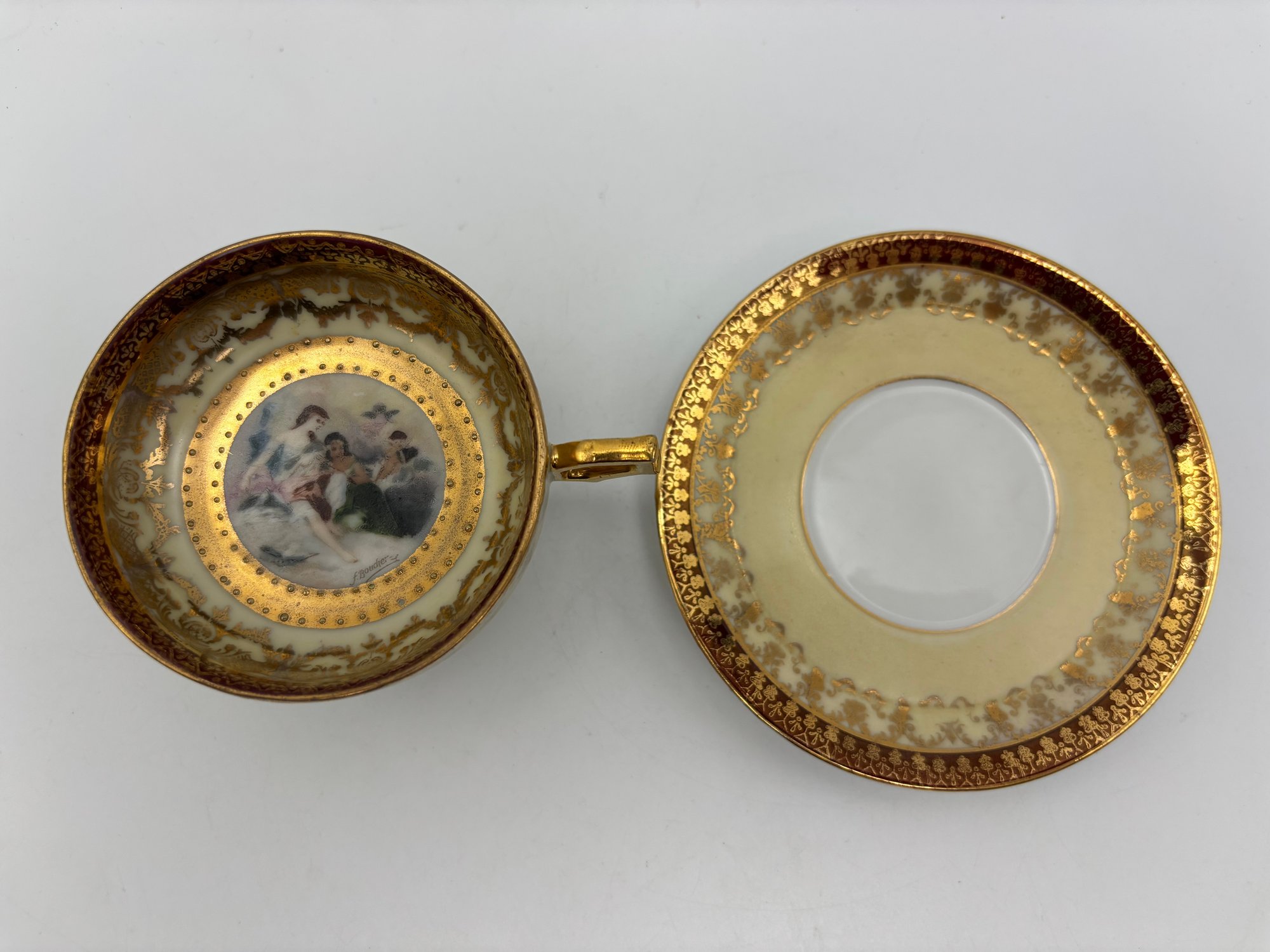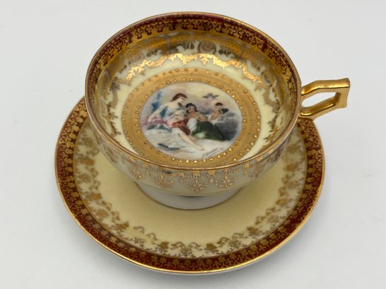 Antique Demitasse Teacup And Saucer German Marked Aull Vien Painting Inside Signed F. Boucher