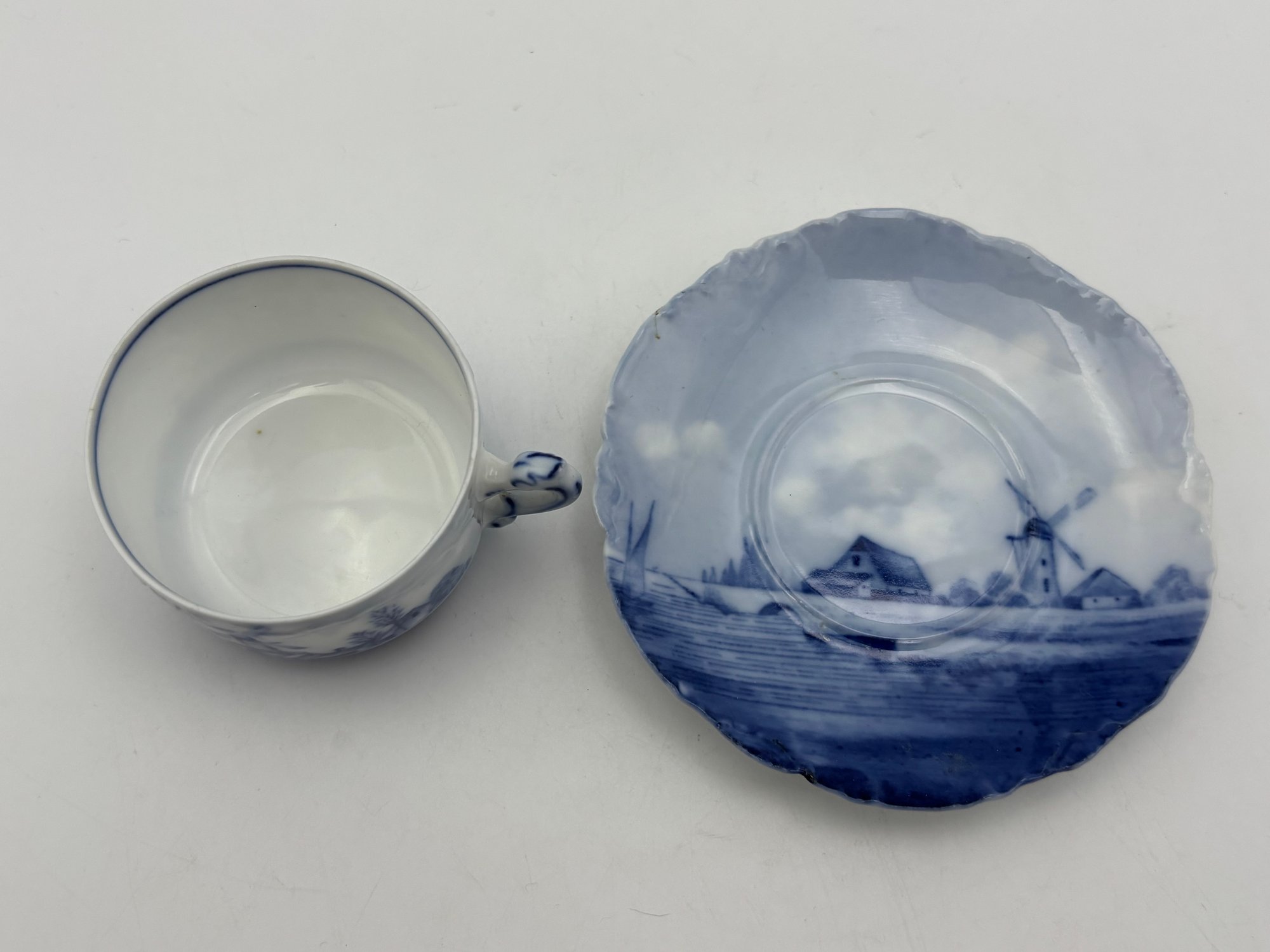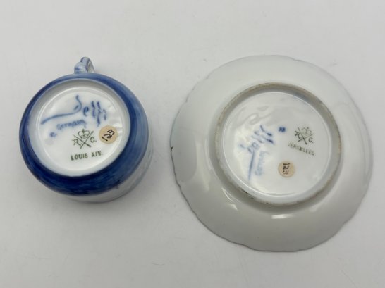 Antique Dutch Delft German Demitasse Louis XIV Royal Versailles Teacup & Saucer Blue & White