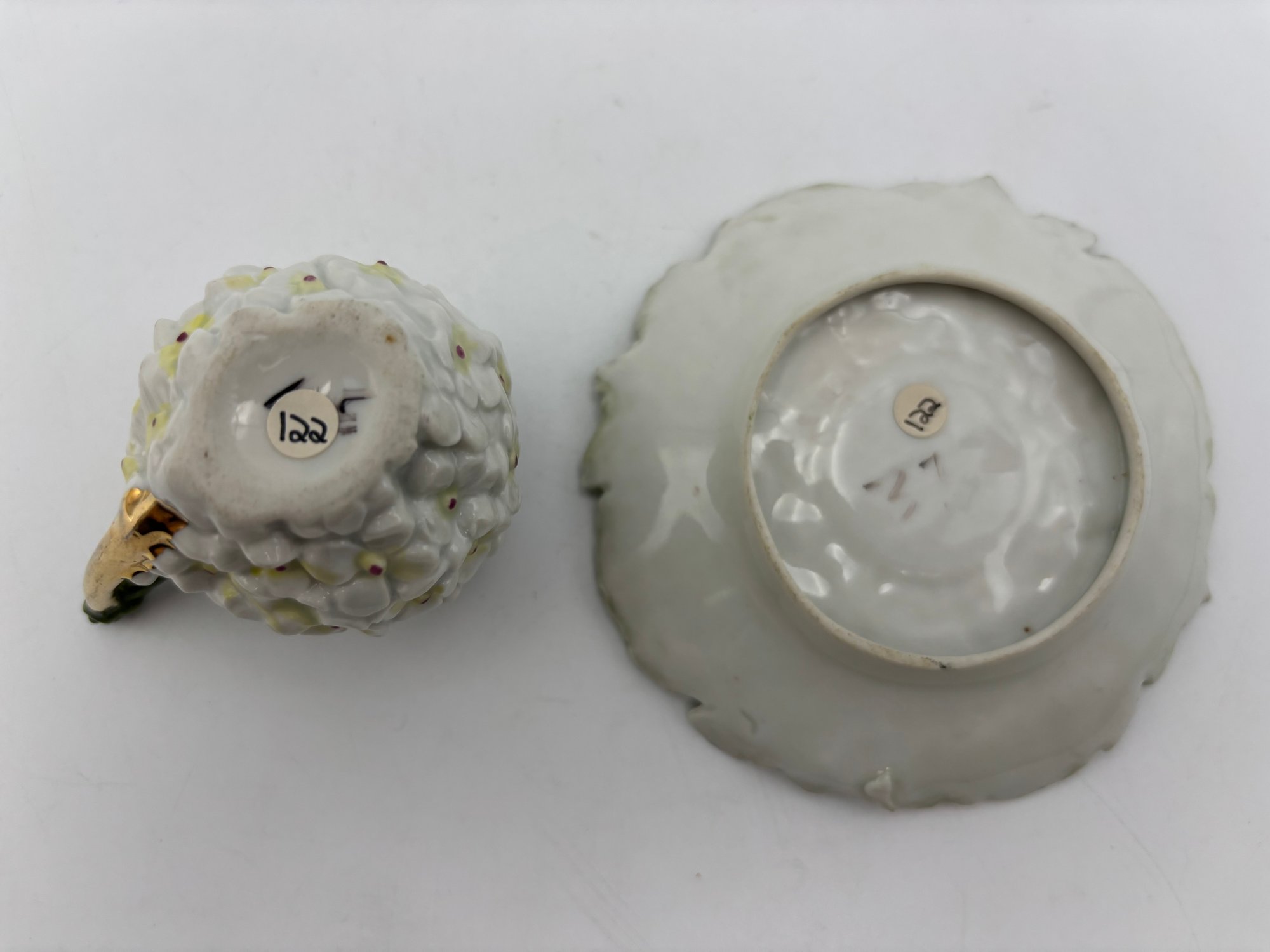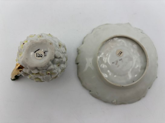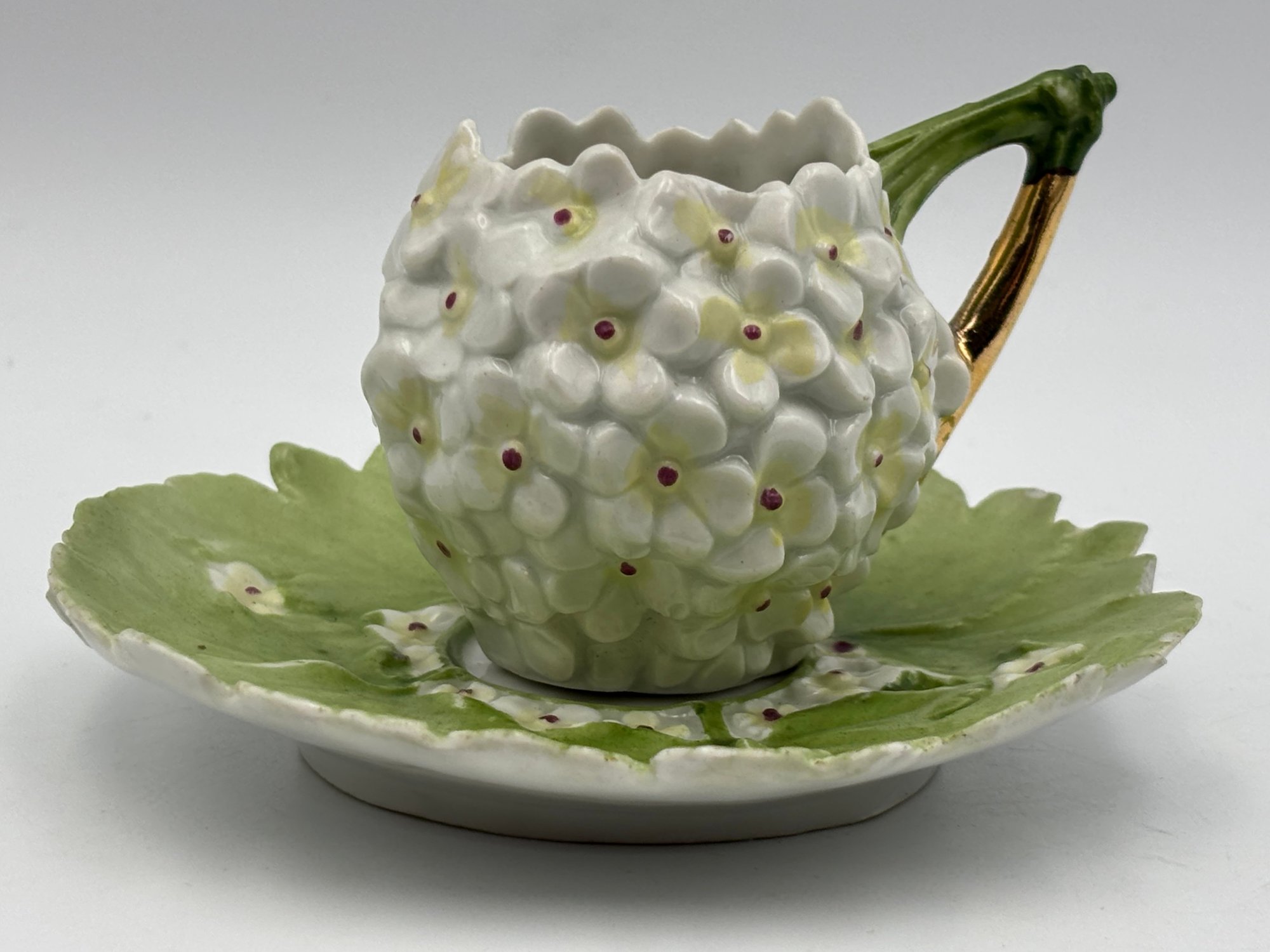 Antique German Possibly Dresden Demitasse Teacup And Saucer Snowball Blossom Design