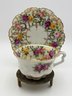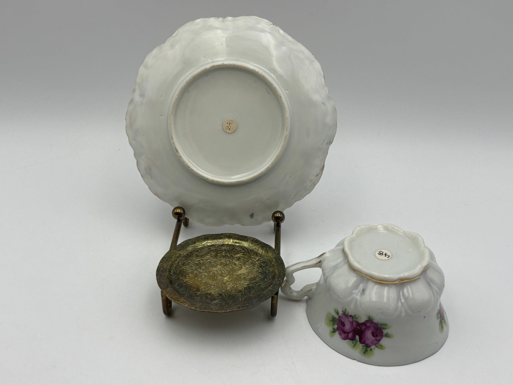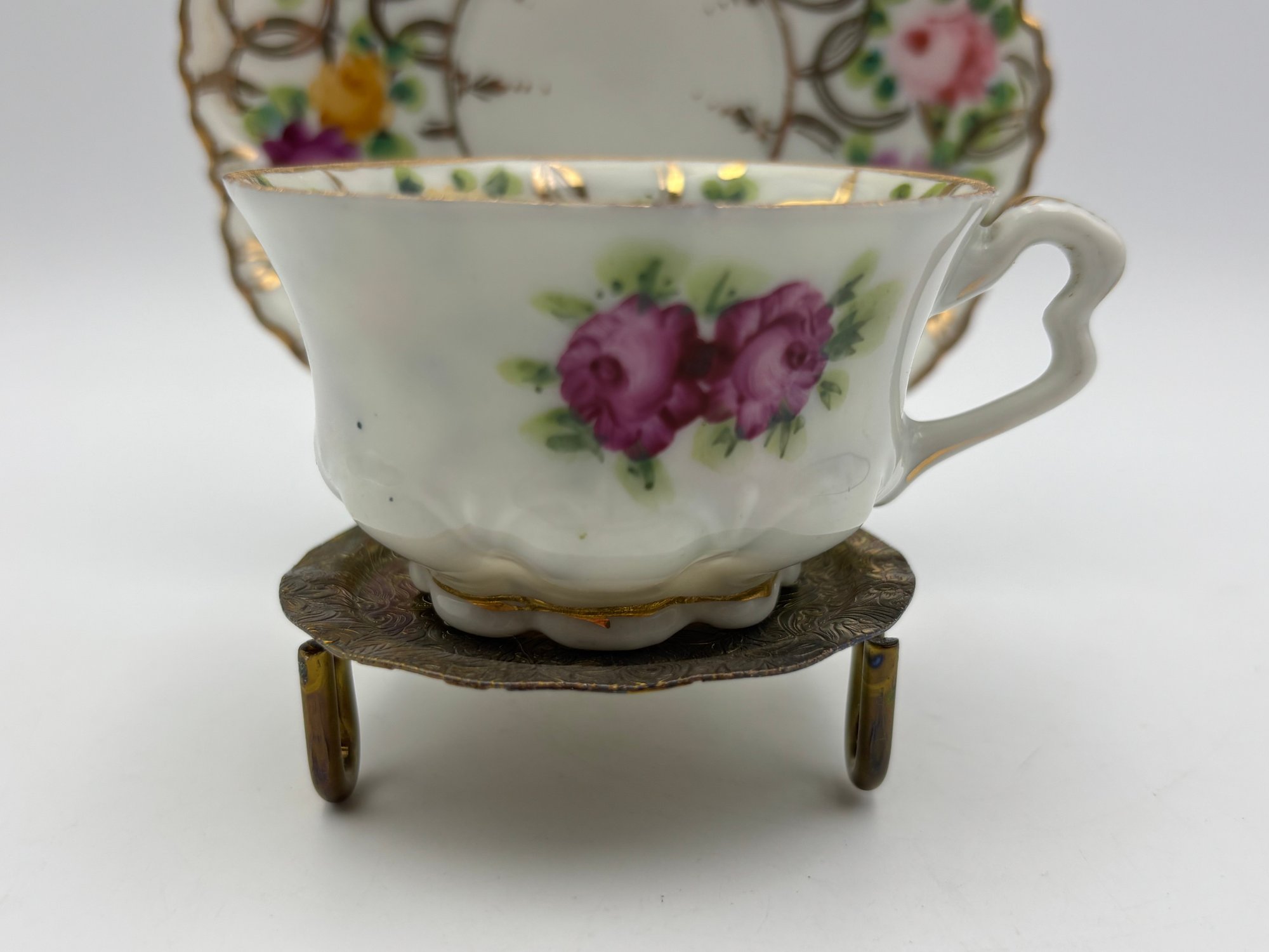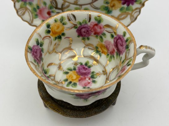 Antique Japanese Demitasse Teacup And Saucer All Over Design, Roses On Saucer And Inside Of Cup