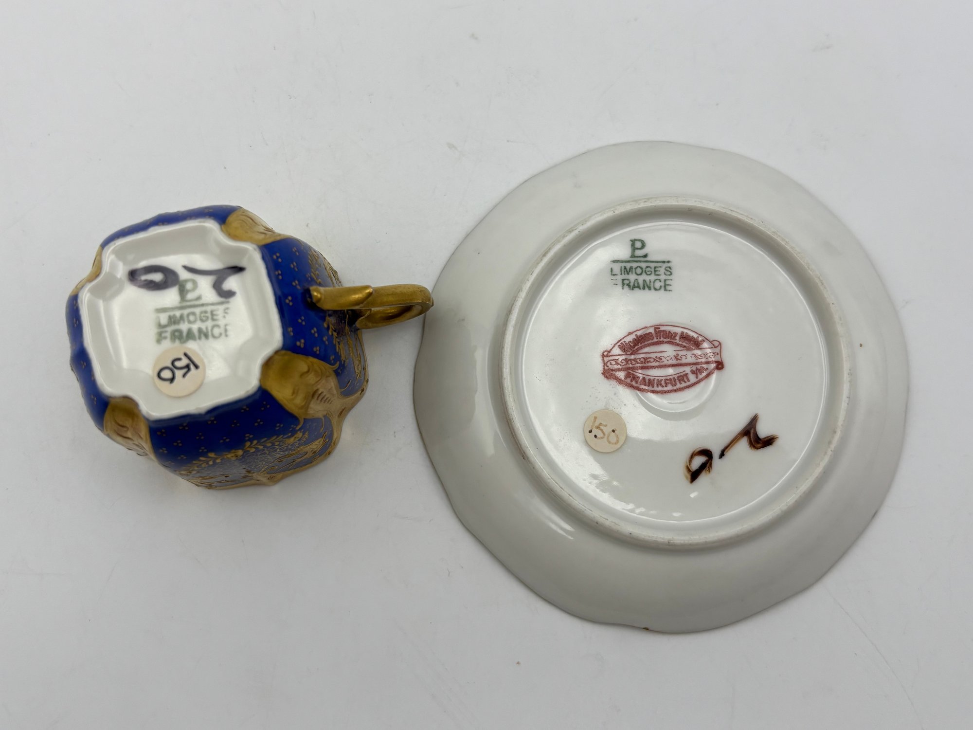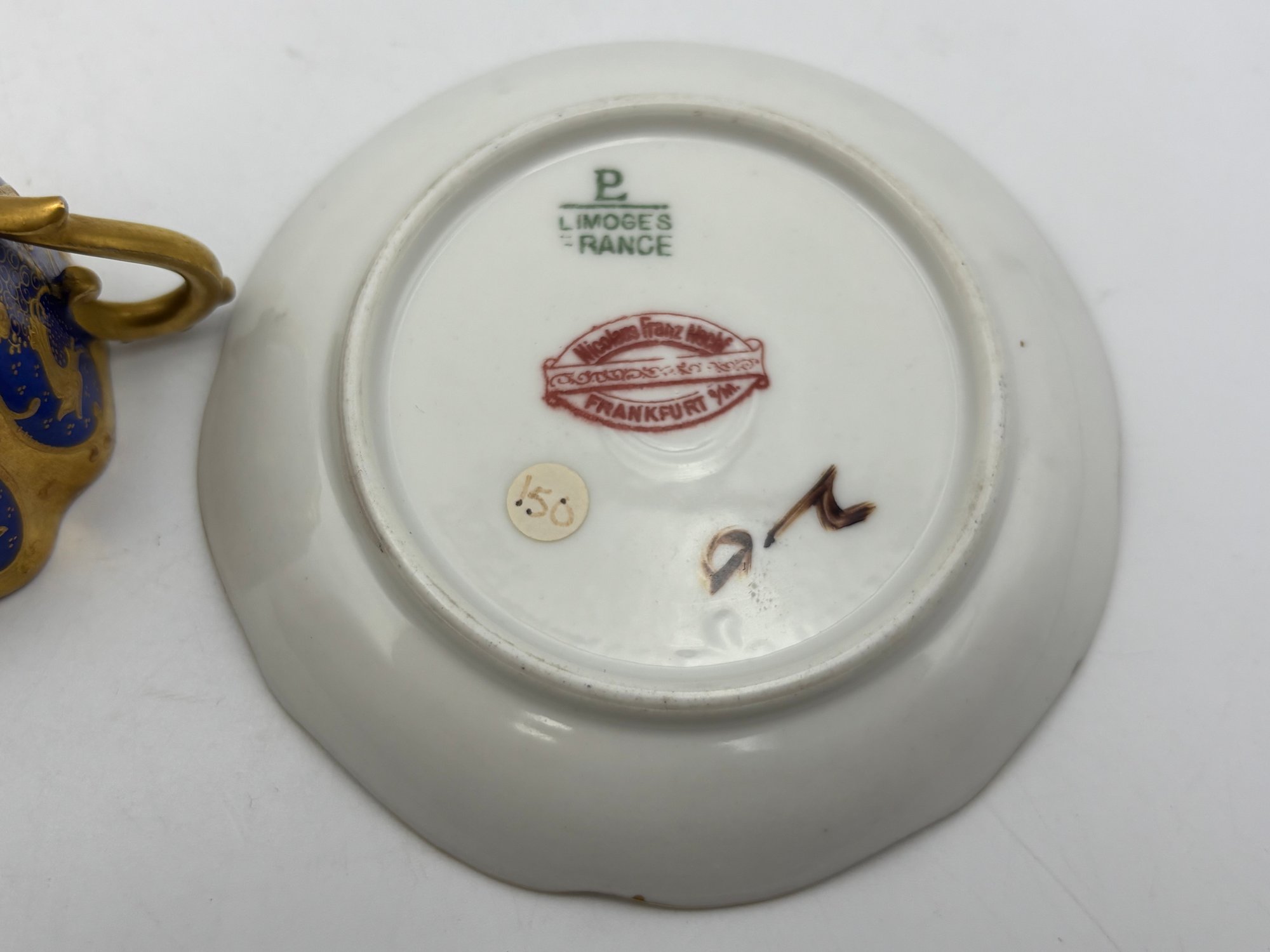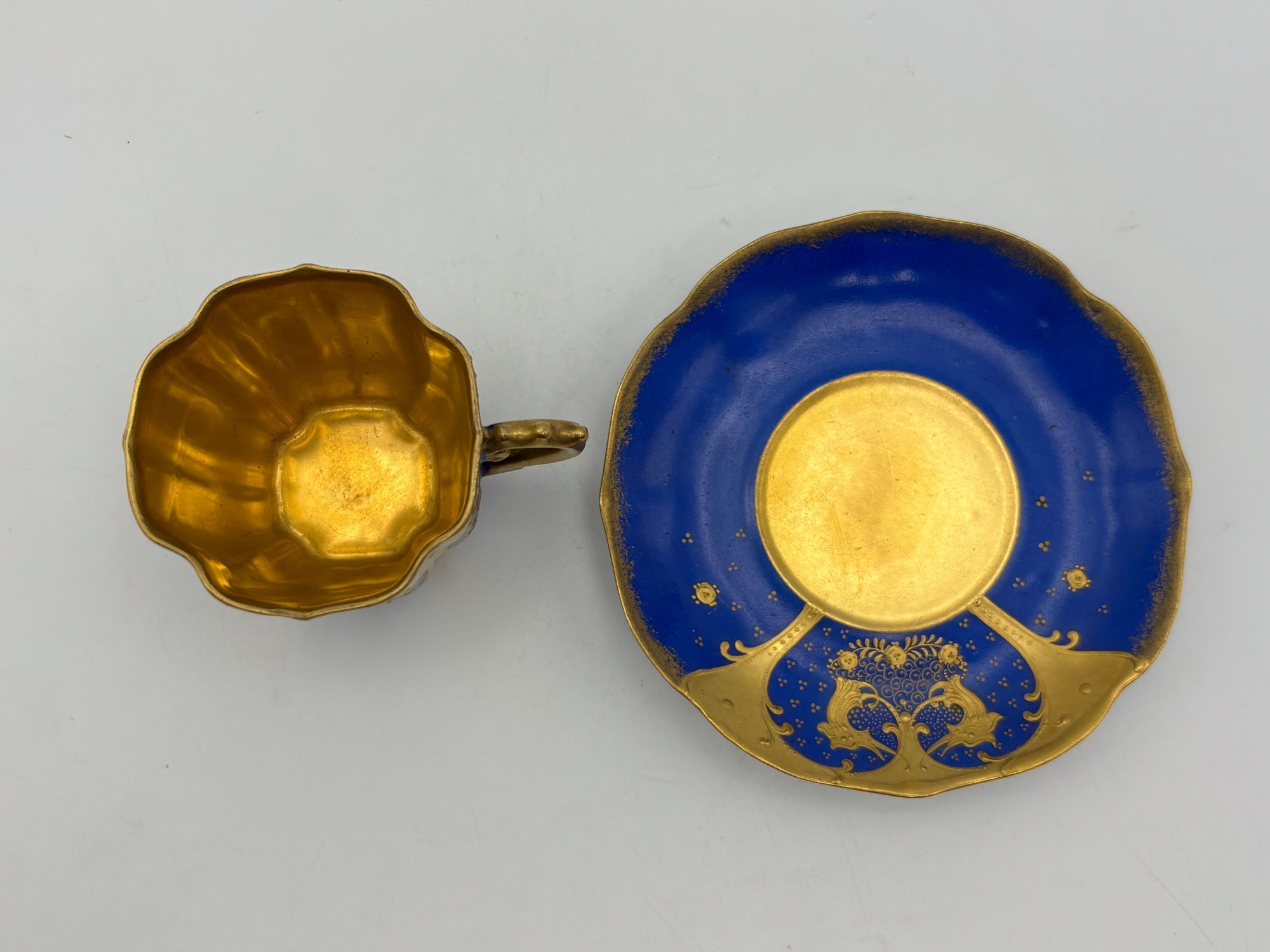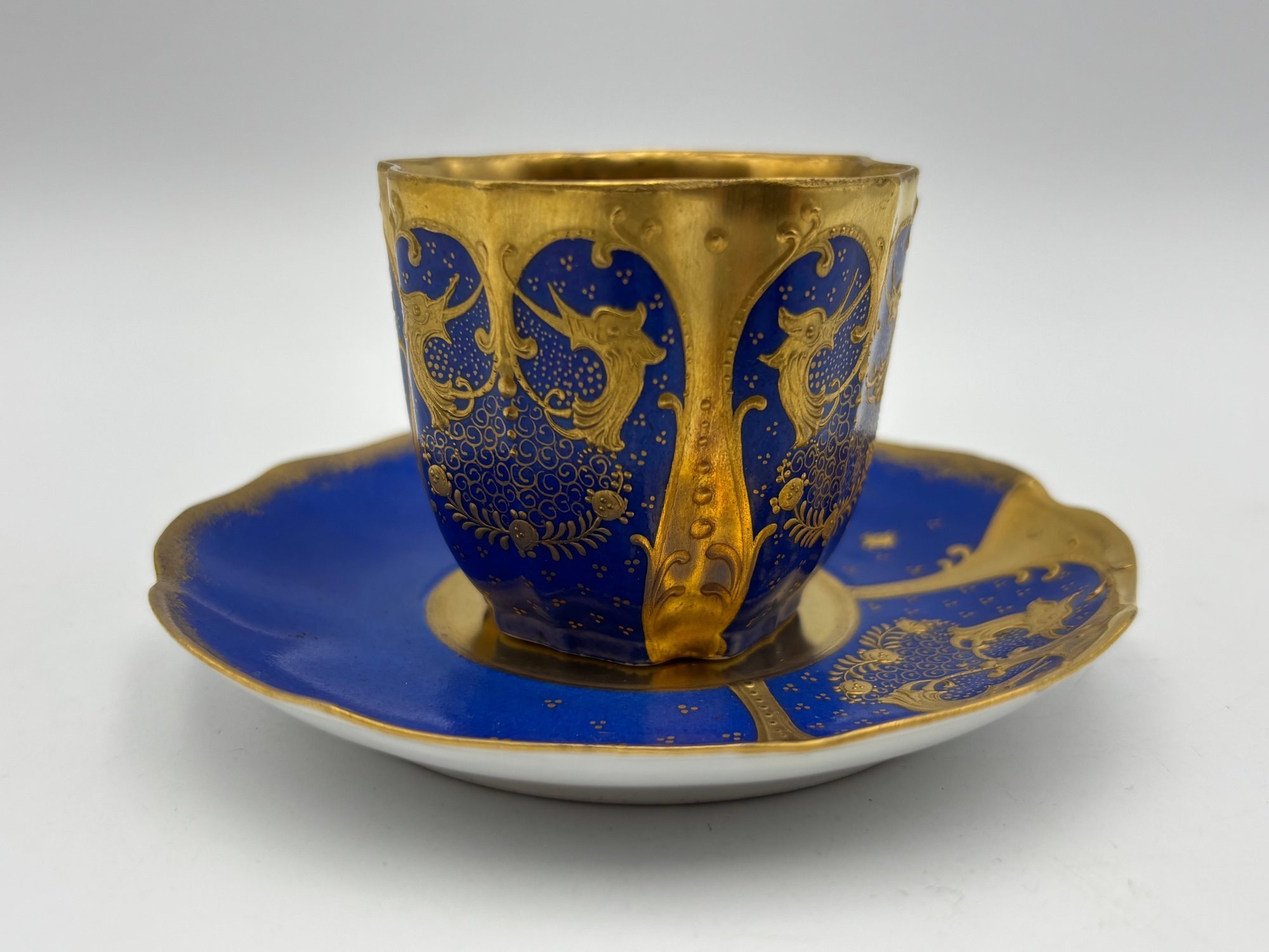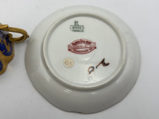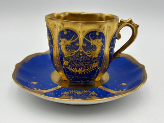 Antique Limoges French Demitasse Teacup Gold Lined Cobalt Blue Decorated With Griffin Heads
