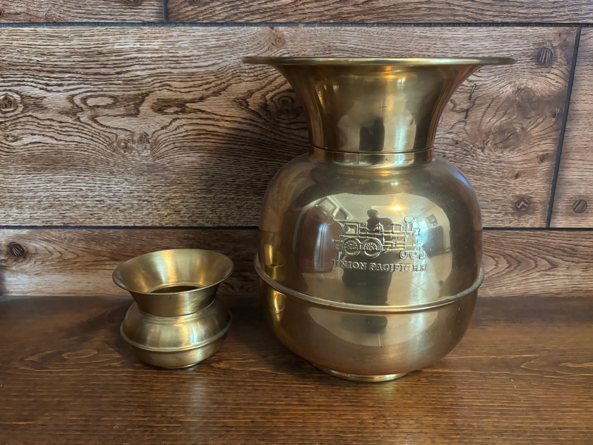 Antique Lot Of 2 Solid Brass Spittoon Cuspidor Pots 3.5" & 11"