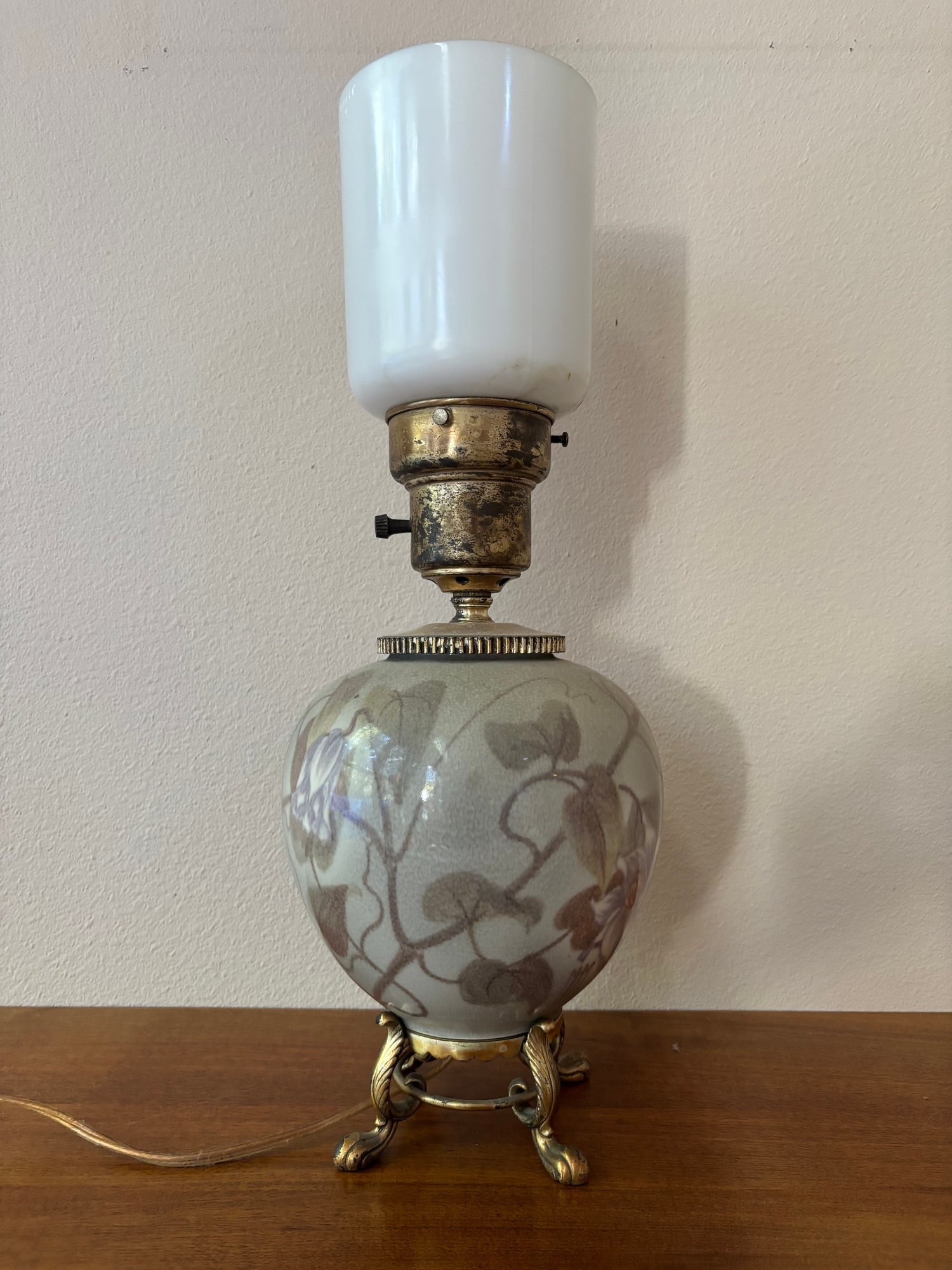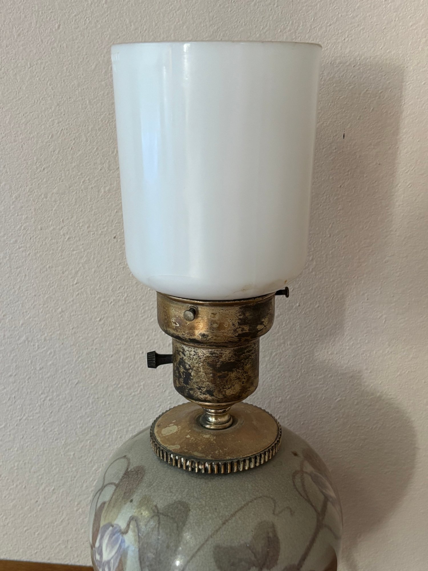 Missing top portion / replaced with milk-glass top
