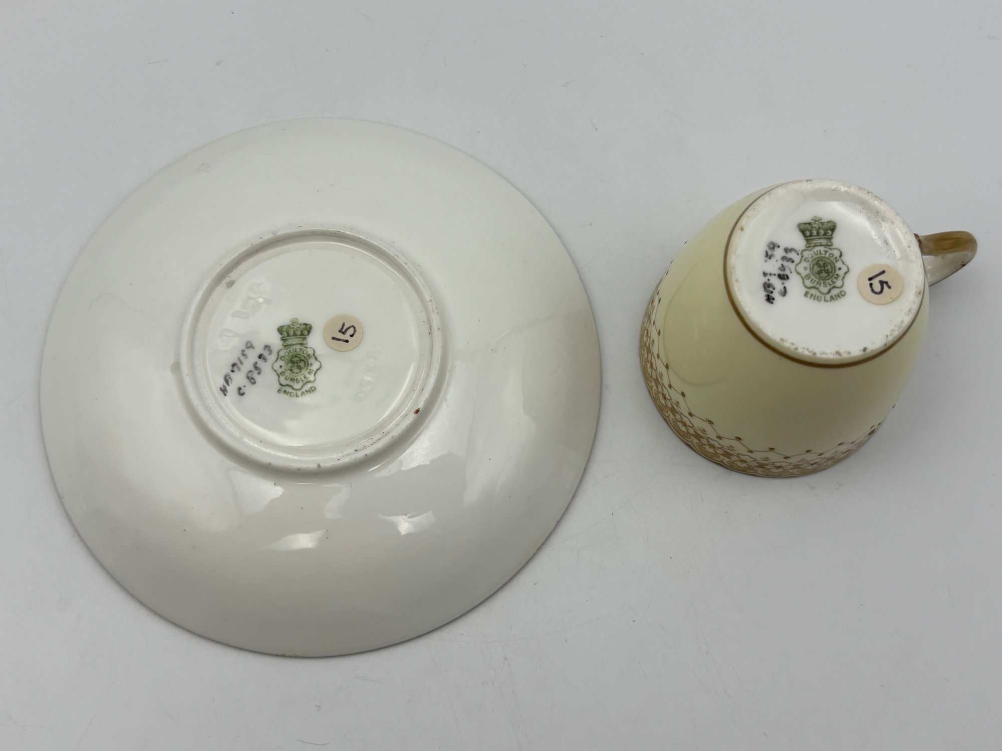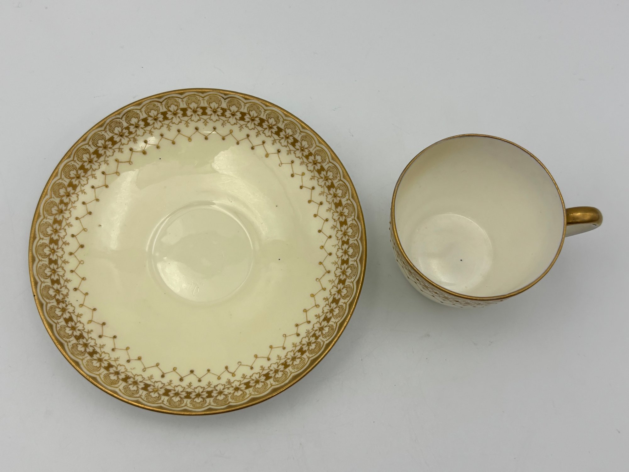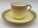Antique Royal Doulton Burslem Demitasse Teacup And Saucer Creamy Light Tan With Lovely Gold Design