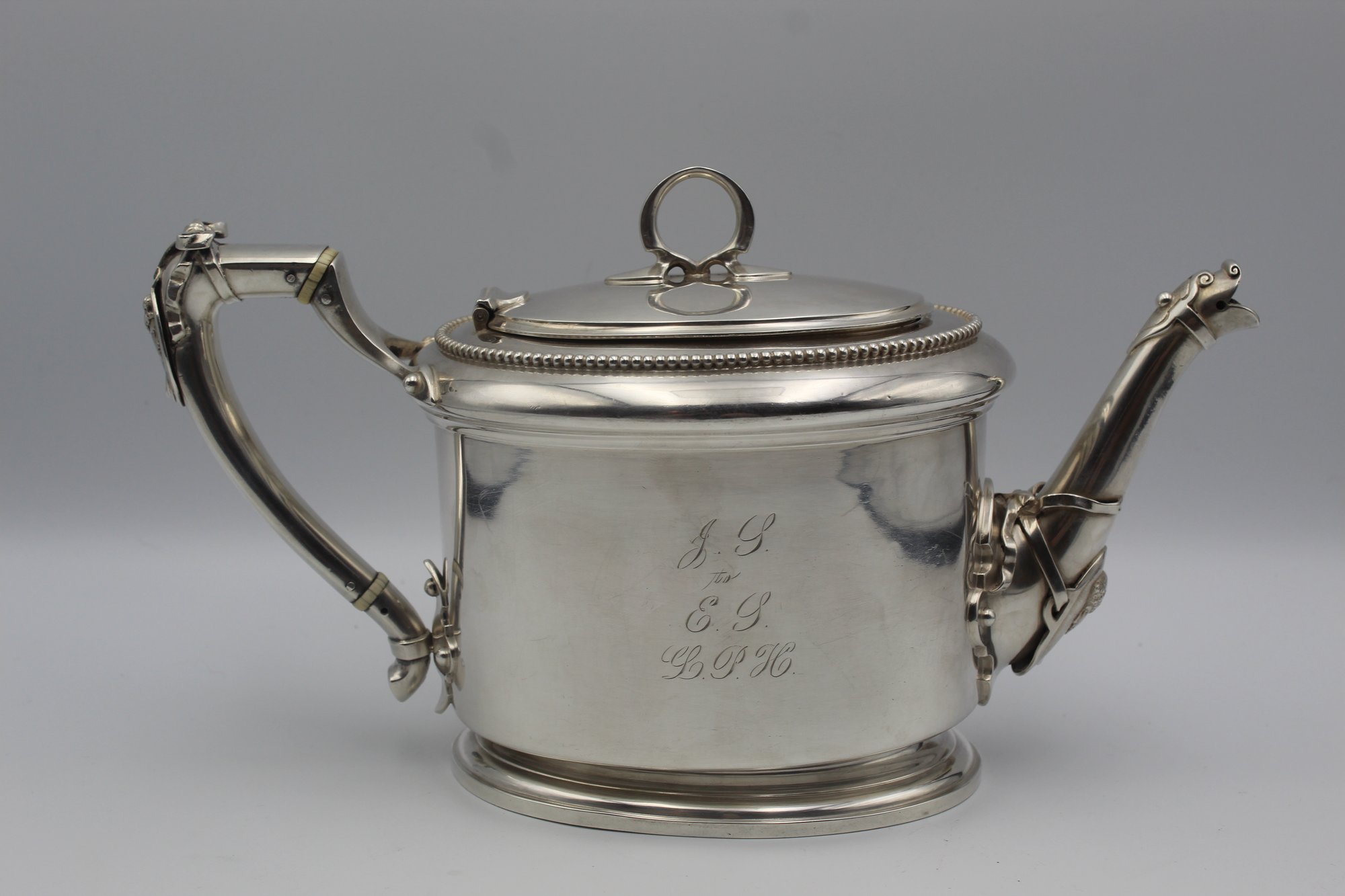 Up for auction is a rare Silver Tea / Coffee Pot by Gorham, made in a wonderful medallion pattern.