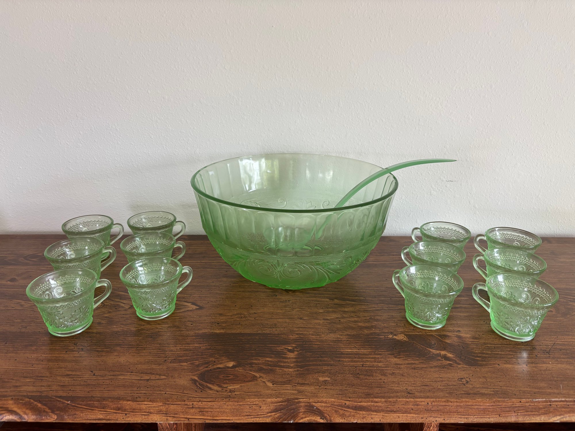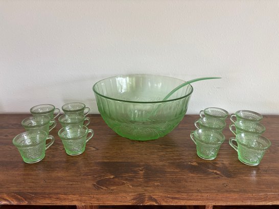 Indiana Chantilly Green Sandwich GlassPunch Bowl Set Tiara With 12 Cups