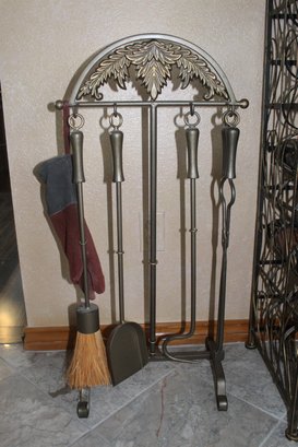 Fireplace Tool Set W/ Stand & Fireplace Glove