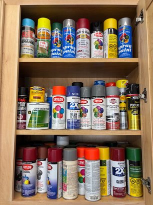 Huge Lot Cabinet Full Of Misc Color Spray Paints By Krylon, Rustoleum, Etc