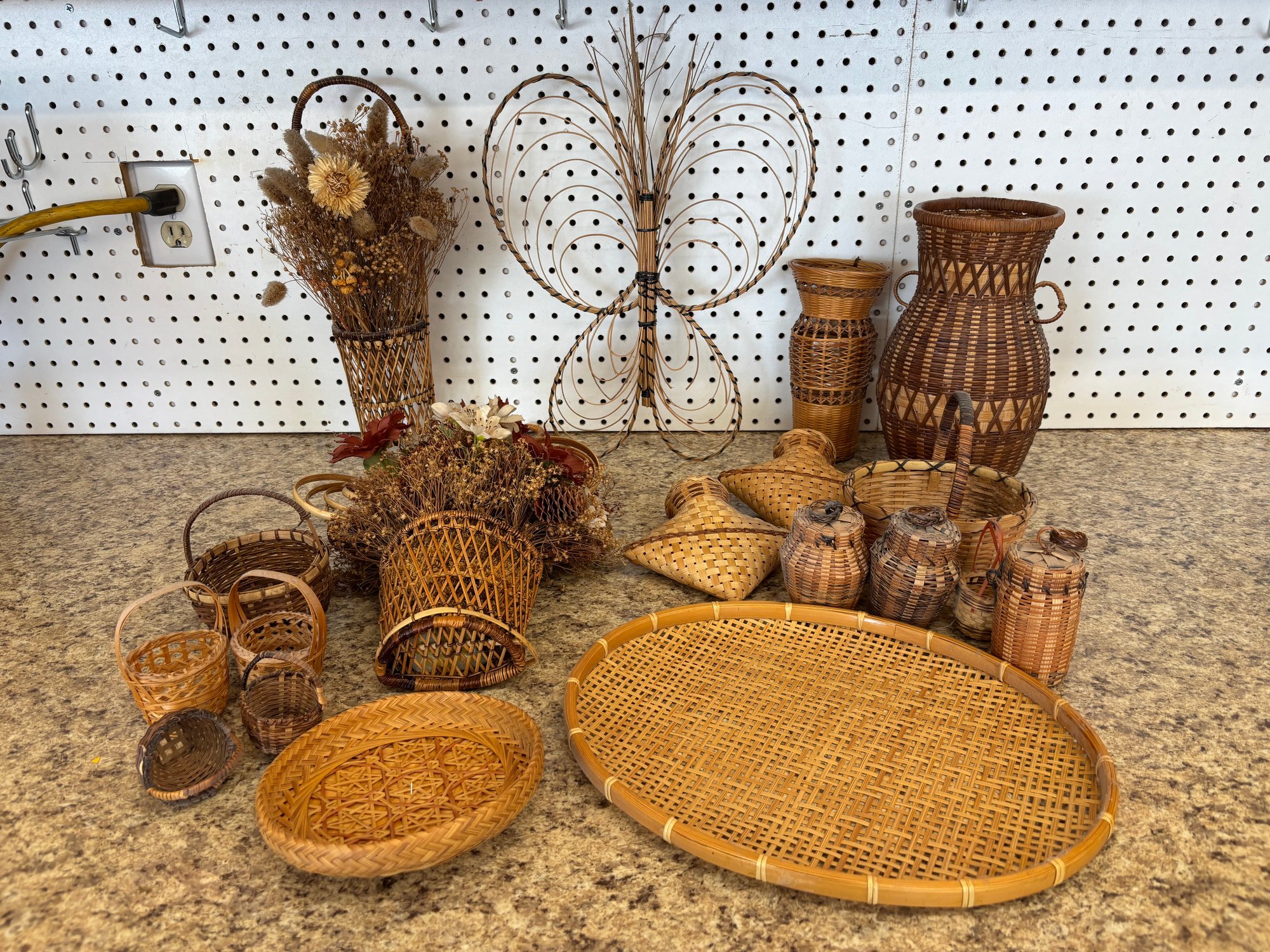 Huge Lot Of Vintage Wicker Decor, Baskets Etc