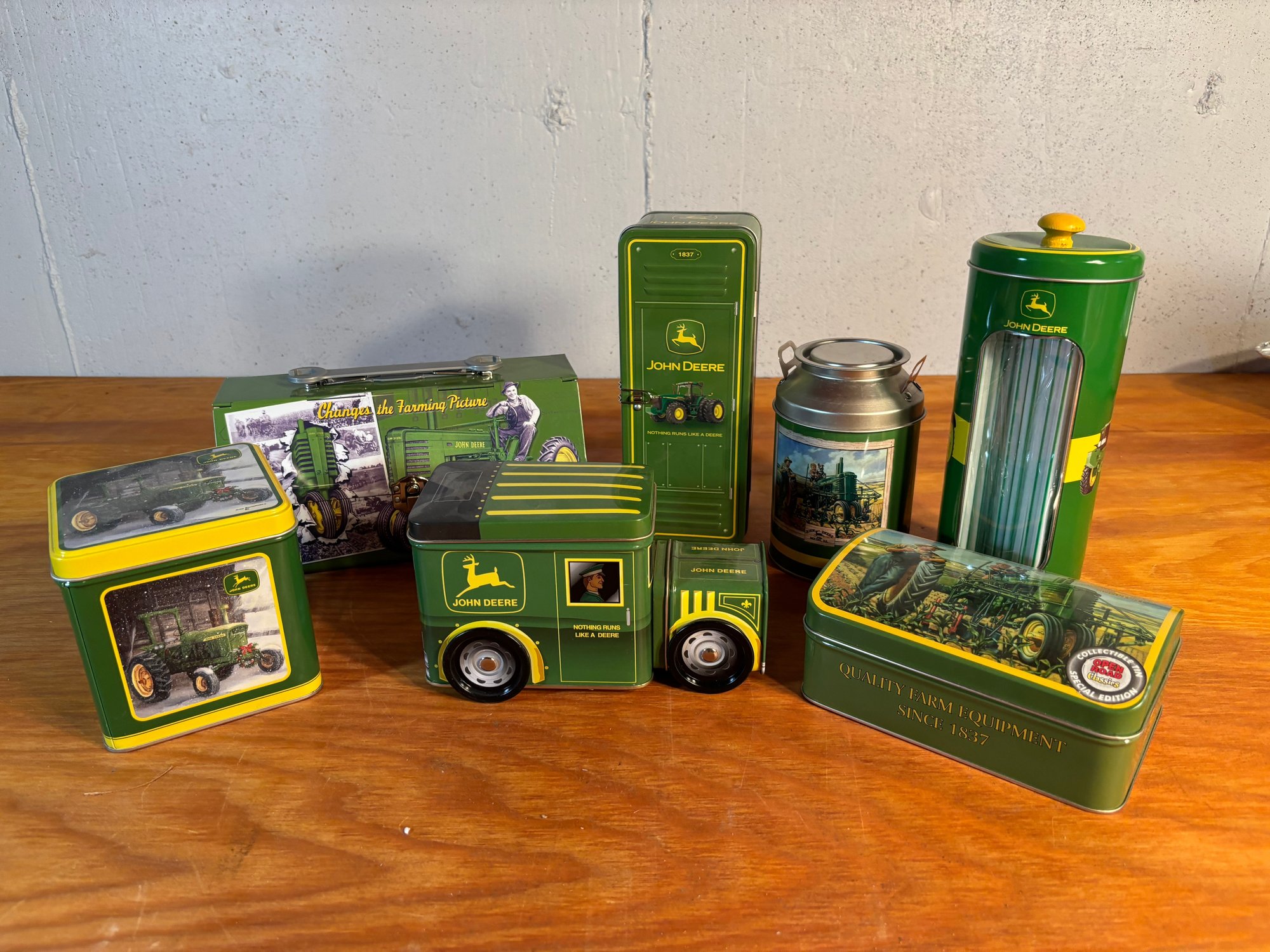 John Deere Lot Of Metal Storage Tins Truck Lunchbox Coinbank REMOVE CAN