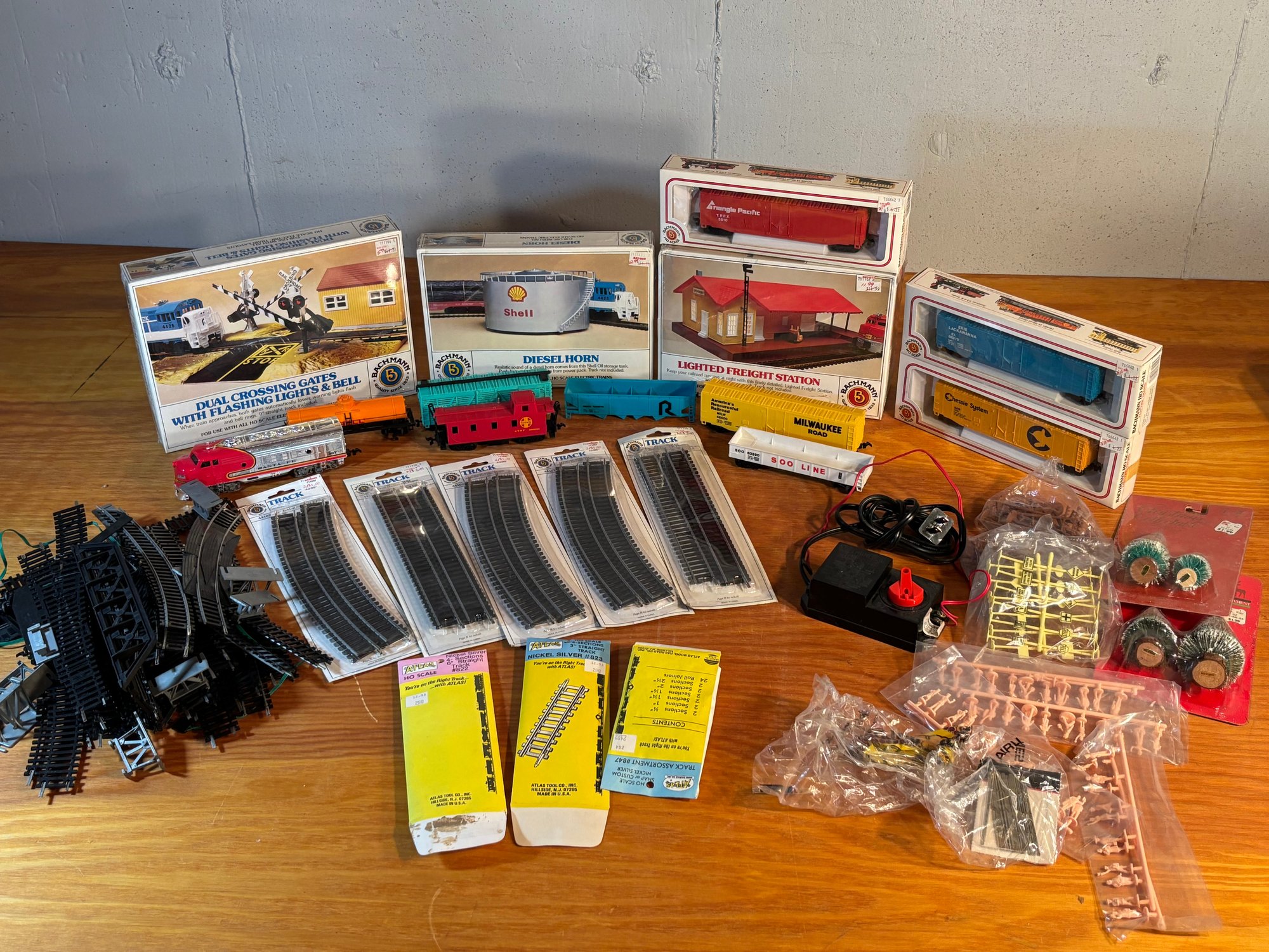 Large Lot Of Bachman HO Scale Model Train, Cars, Tracks, Building, Santa Fe & More!