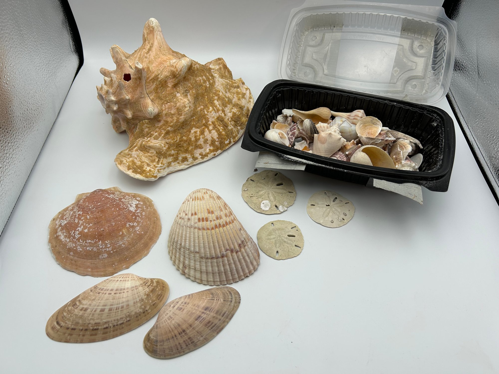 Large Lot Of Sea Shells Sand Dollars, Conch Shell , Etc