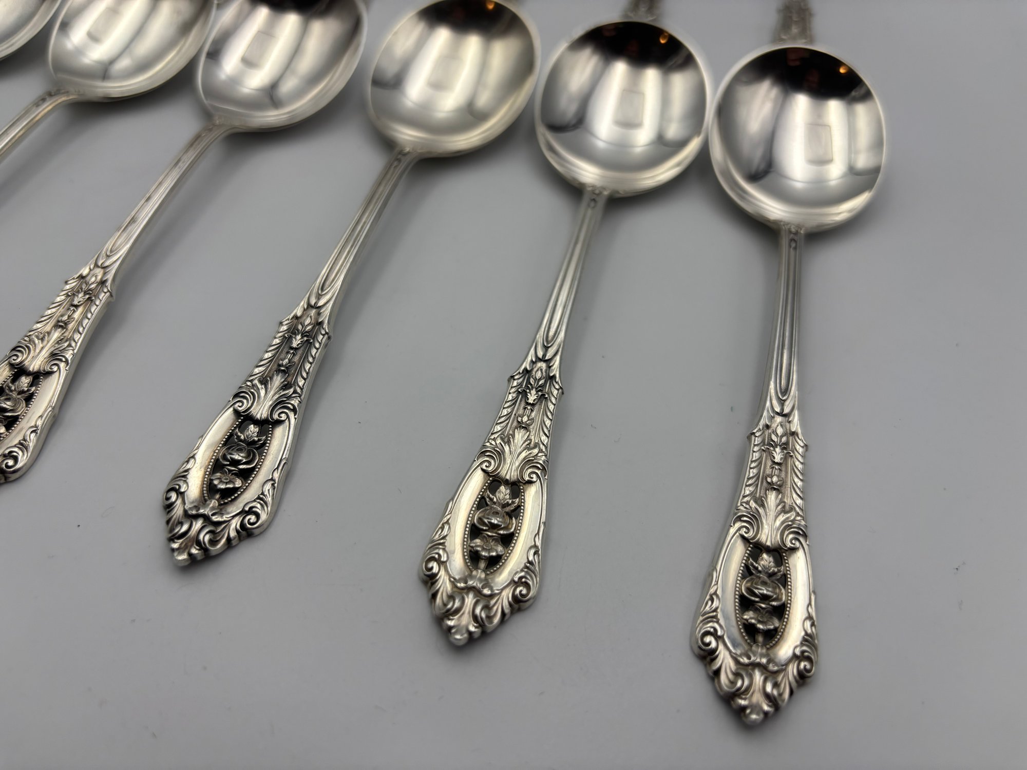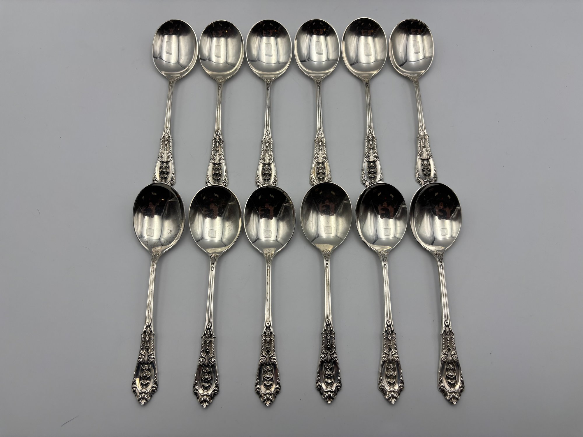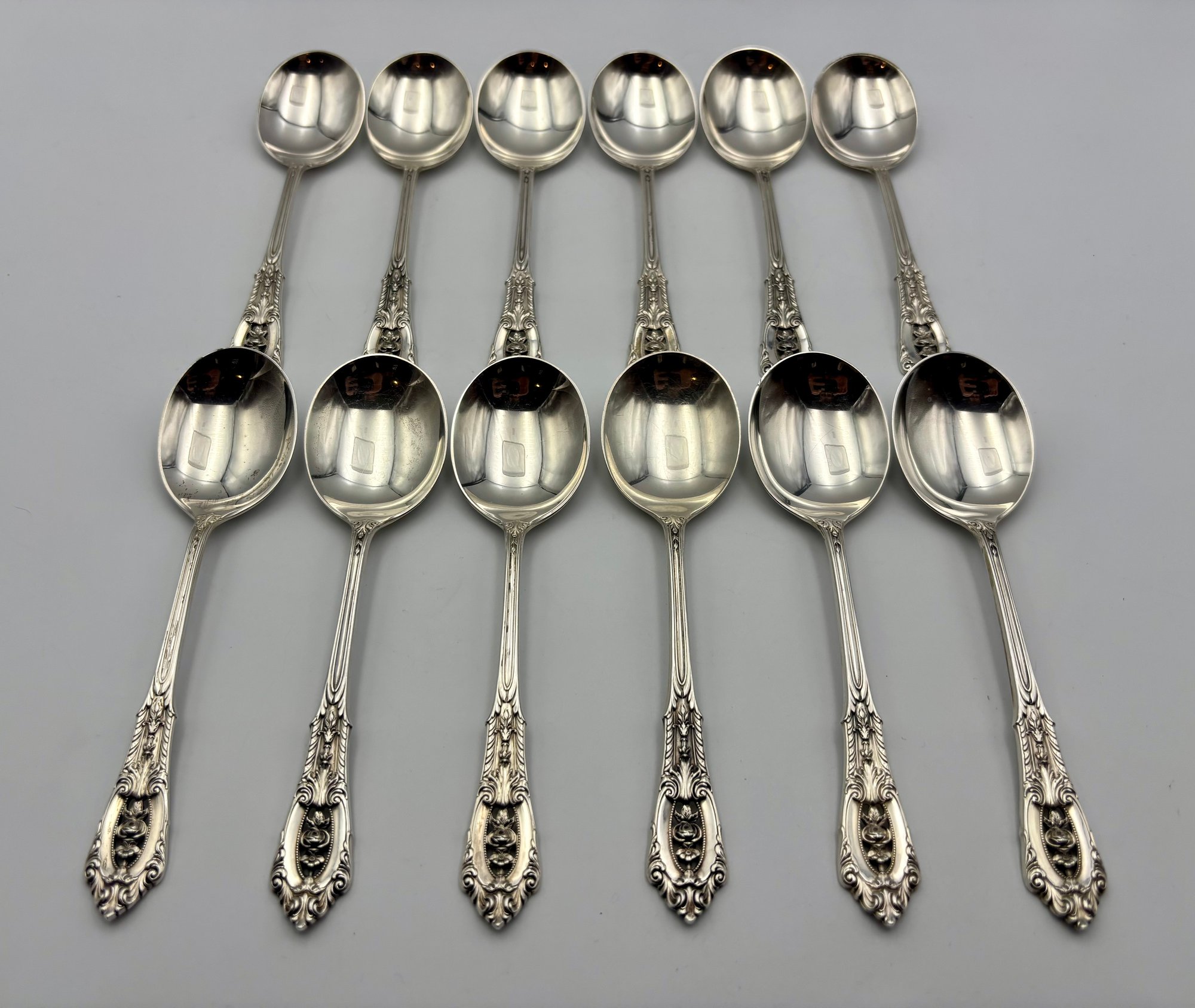 Lot Of 12 Wallace Sterling Silver Rose Point Soup Spoons Flatware 6" (14oz)