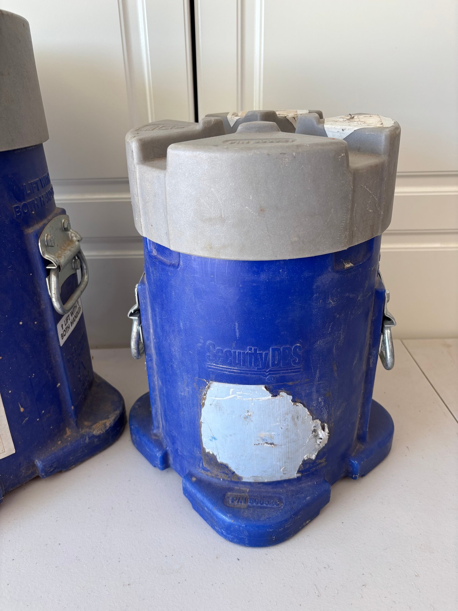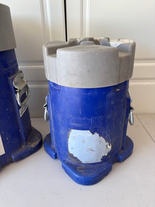 Lot Of 2 Blue Security DBS Cylindrical Oil Rig Drill Bit Round Shipping Storage Containers