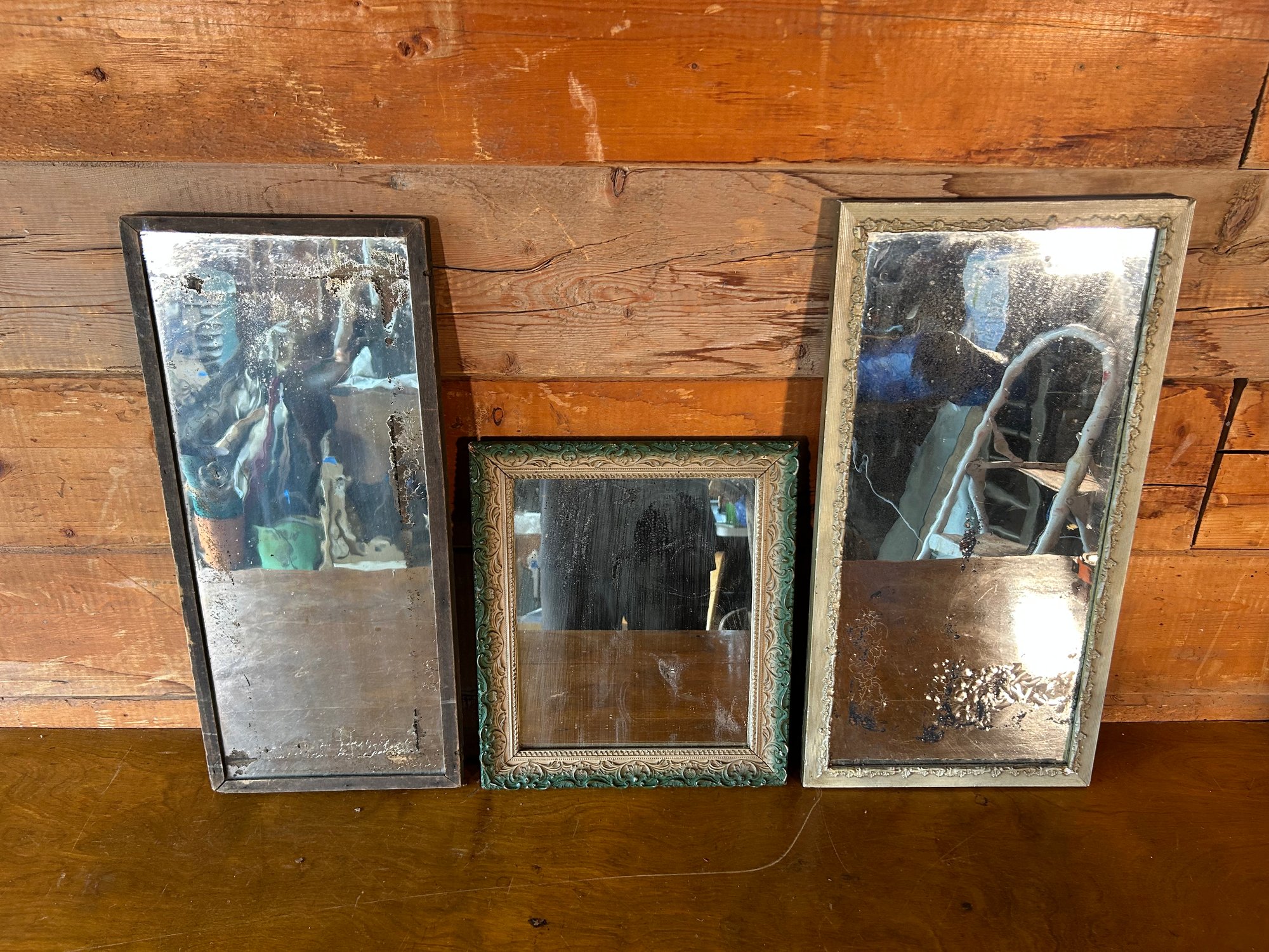 Lot Of 3 Antique Wood Framed Mirrors - Brown, Green, Tan