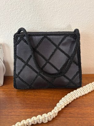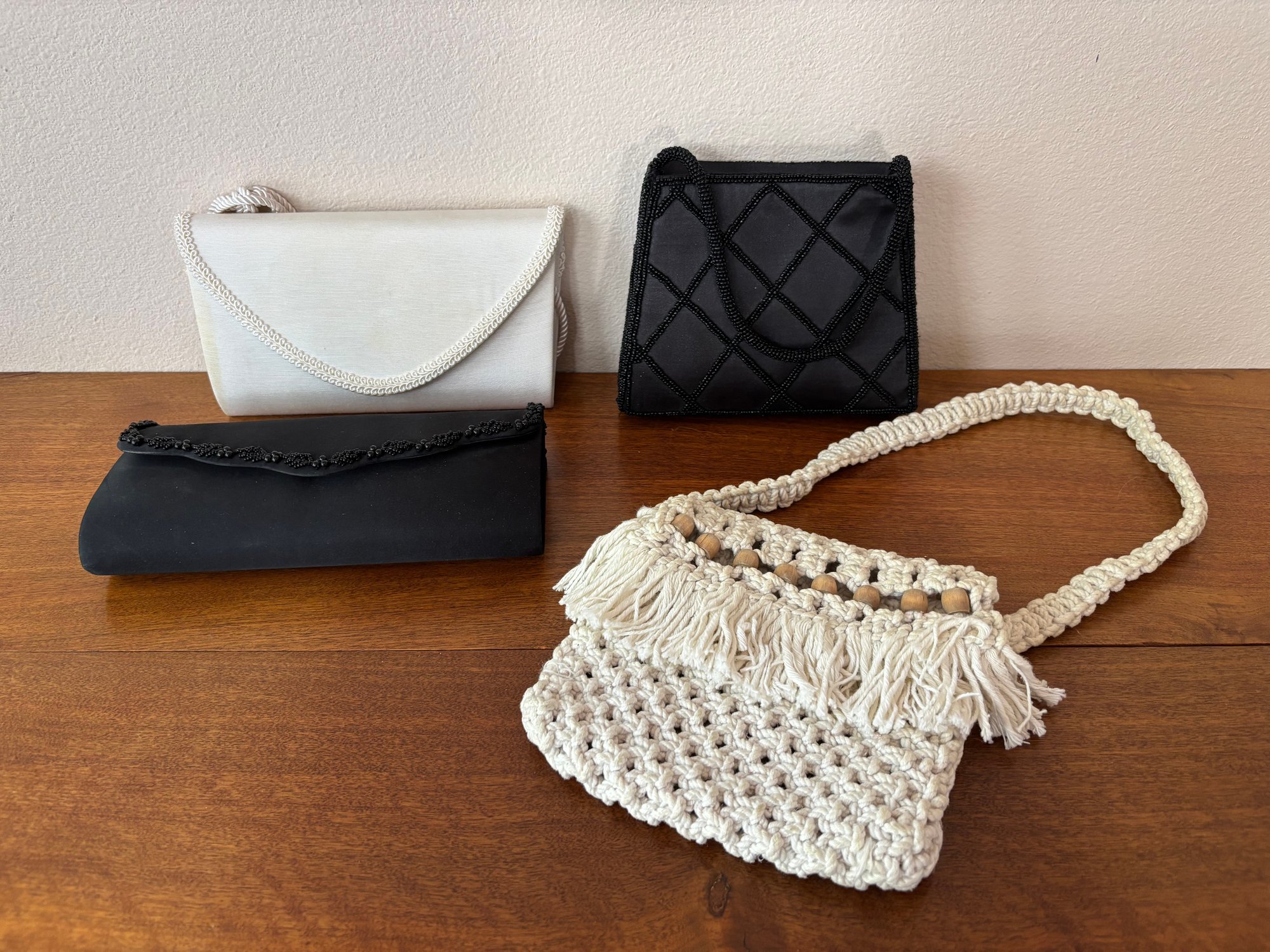 Lot Of 4 Vintage Women's Clutches & Small Crossbody Purses Hand Beaded & Macrame
